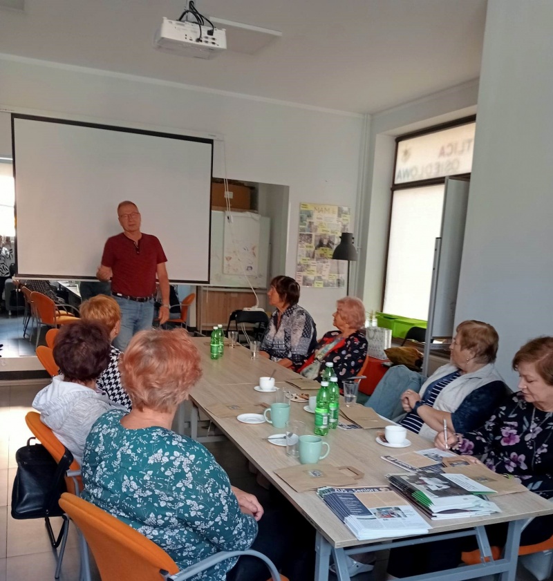 Kolejną kwestią poruszoną podczas tego spotkania były również oszustwa, m.in. te na tzw. „marynarza czy amerykańskiego żołnierza". Pan Jacek Salamon z Fundacji IWO-Doradztwo Obywatelskie opowiedział o właśnie takich sposobach wyłudzeń, polegających na rozkochaniu w sobie przez oszusta osoby starszej i samotnej. Nieświadoma ofiara poznaje swoją „miłość” na portalach społecznościowych czy profilach randkowych. Sprawca otacza ofiarę czułością i romantyzmem, a jak się później okazuje, wymyśla różne kłamstwa, aby pozyskać pieniądze od zakochanej osoby, a później znika. Pan Jacek Salamon przedstawił uczestnikom spotkania różne formy pomocy, z jakich mogą korzystać, w przypadku gdy staną się ofiarami przestępstwa. Jedną z możliwości jest skorzystanie z nieodpłatnej pomocy prawnej i pychologicznej, jaką od lat świadczy Fundacja IWO-Doradztwo Obywatelskie. Więcej informacji na temat działania Fundacji znajdziecie Państwo na stronie www.fundacjaiwo.org