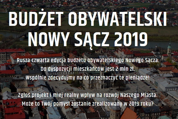 Wzorem lat ubiegłych Prezydent Miasta Nowego Sącza zarządzeniem nr 75/2018 z dnia 12 lutego 2018 r. ogłosił Regulamin Budżetu Obywatelskiego Miasta Nowego Sącza na rok 2019, w ten sposób zaprosił mieszkańców miasta do udziału w tworzeniu budżetu na 2019 r. w ramach tzw. Budżetu Obywatelskiego.