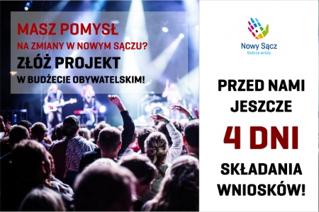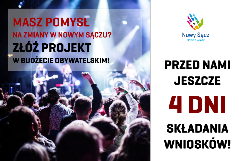 Jeszcze tylko do piątku (6 kwietnia) można składać projekty zadań publicznych do Budżetu Obywatelskiego Nowego Sącza na rok 2019. To już ostatnie dni na skorzystanie z możliwości, jakie daje ten mechanizm partycypacyjny. Nie byłoby budżetu obywatelskiego, gdyby nie ciekawe i potrzebne pomysły mieszkańców. Zgłoszenie projektów do budżetu obywatelskiego Nowego Sącza na rok 2019 jest bardzo proste. Poniżej znajdziesz instrukcję jak to zrobić.
