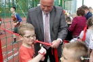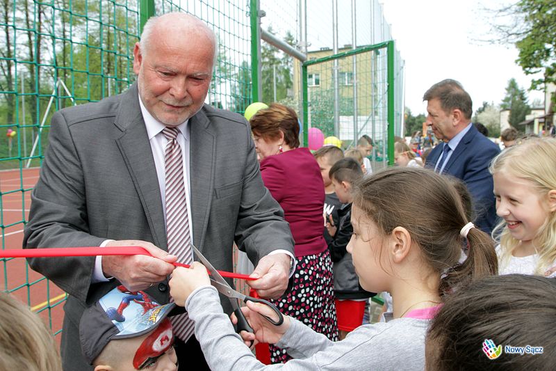 Wśród przecinających wstęgę był zastępca prezydenta Nowego Sącza Jerzy Gwiżdż. - Bardzo się cieszę, że możemy dzisiaj otworzyć to piękne boisko. To jest taka chwila, w której jest jakaś wewnętrzna radość z tego, że coś się zrobiło, coś się komuś przekazuje – powiedział Jerzy Gwiżdż. - Dziękuję bardzo wszystkim za to, że mogliśmy tę inwestycję przeprowadzić w krótkim czasie; przede wszystkim panu dyrektorowi Tomaszowi Łuczkiewiczowi z Wydziału Inwestycji i Remontów i jego współpracownikom, radnym, którzy wspierali to przedsięwzięcie swoim głosowaniem nad budżetem miasta oraz tym wszystkim, którzy pozwolili, że to boisko powstało, bo dali swoje pieniądze, czyli waszym rodzicom - dodał zastępca prezydenta.
