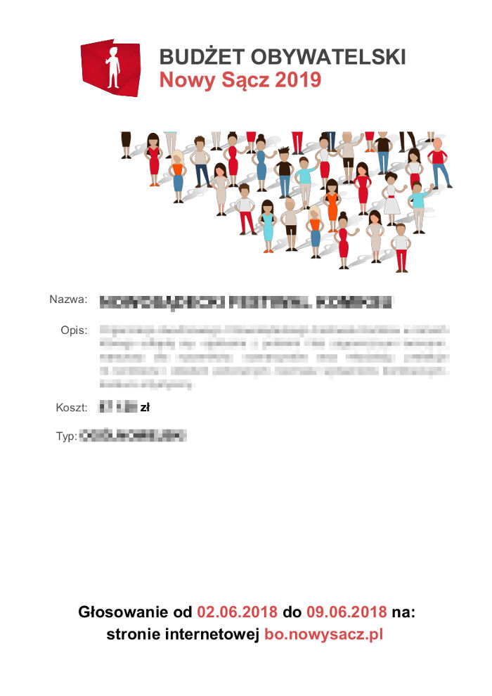Pobierz ze strony https://www.bo.nowysacz.pl wygenerowany przez platformę Budżetu Obywatelskiego Miasta Nowego Sącza plakat dla konkretnego projektu.