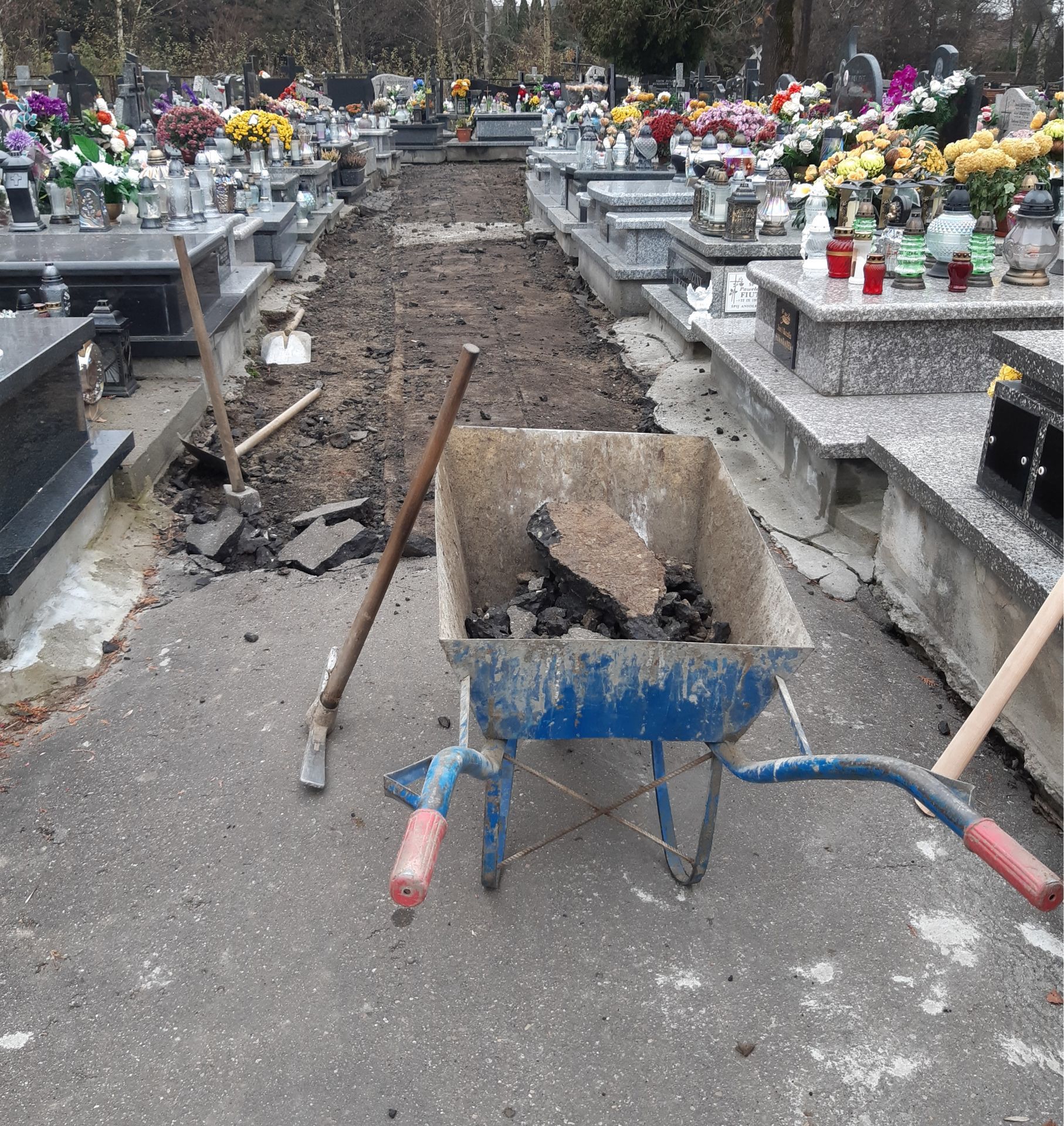 Prace wykonywane są głównie ręcznie, aby nie uszkodzić pobliskich grobowców. Zamiast asfaltu i płyt betonowych zostanie położona kostka brukowa o grubości sześciu centymetrów.