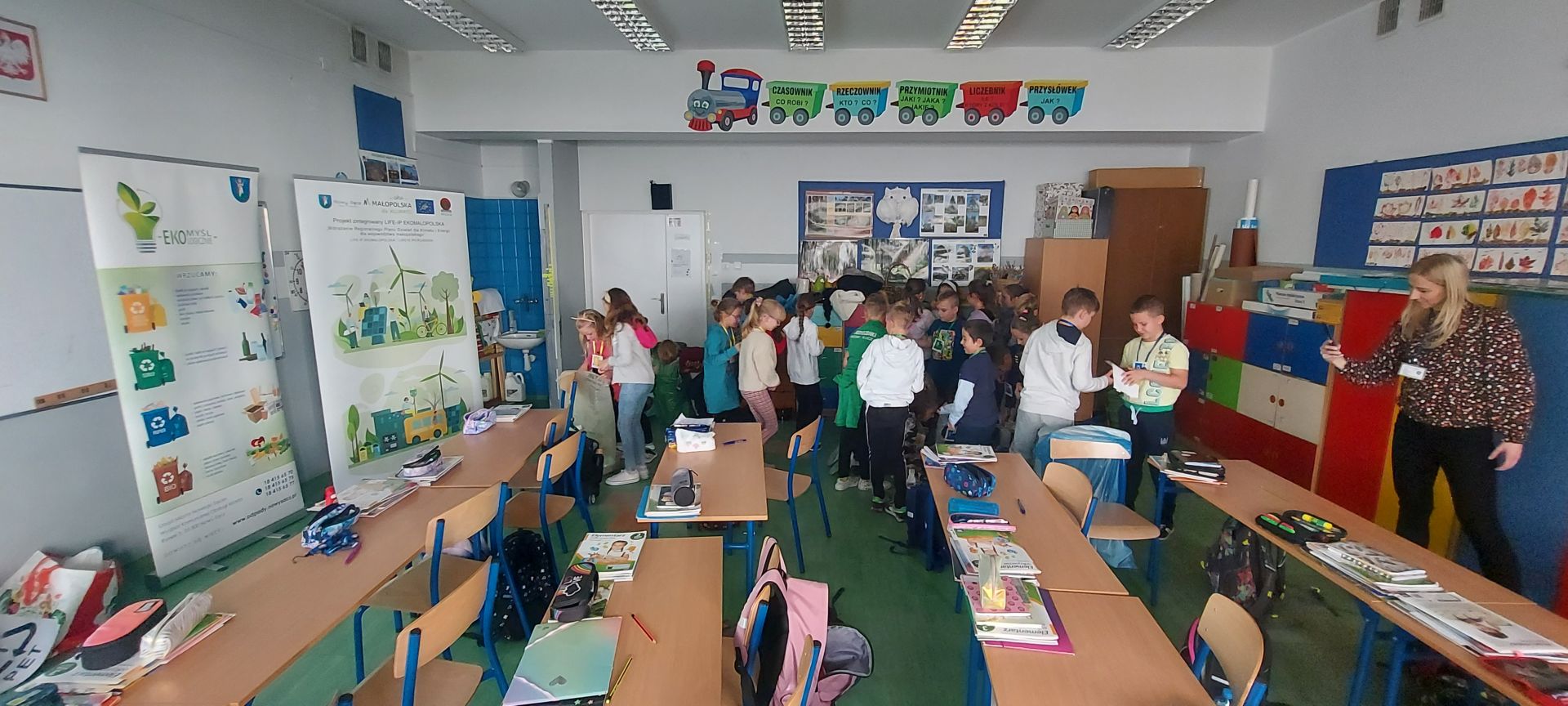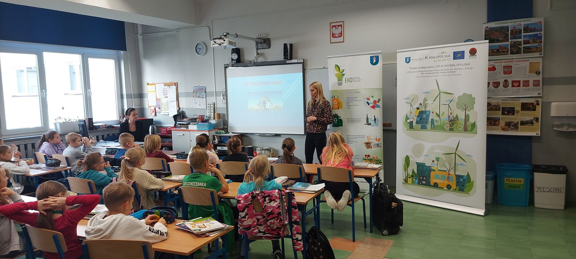W szkole Podstawowej nr 20 na ulicy Nadbrzeżnej 77 w Nowym Sączu, uczniowie klasy 3 wzięli udział w zajęciach zorganizowanych przez Wydział Komunalnej Obsługi Miasta oraz Wydział Środowiska. Oprócz tematyki odpadów i recyklingu w cyklu prelekcji pojawiły się zagadnienia związane z oszczędzaniem energii.