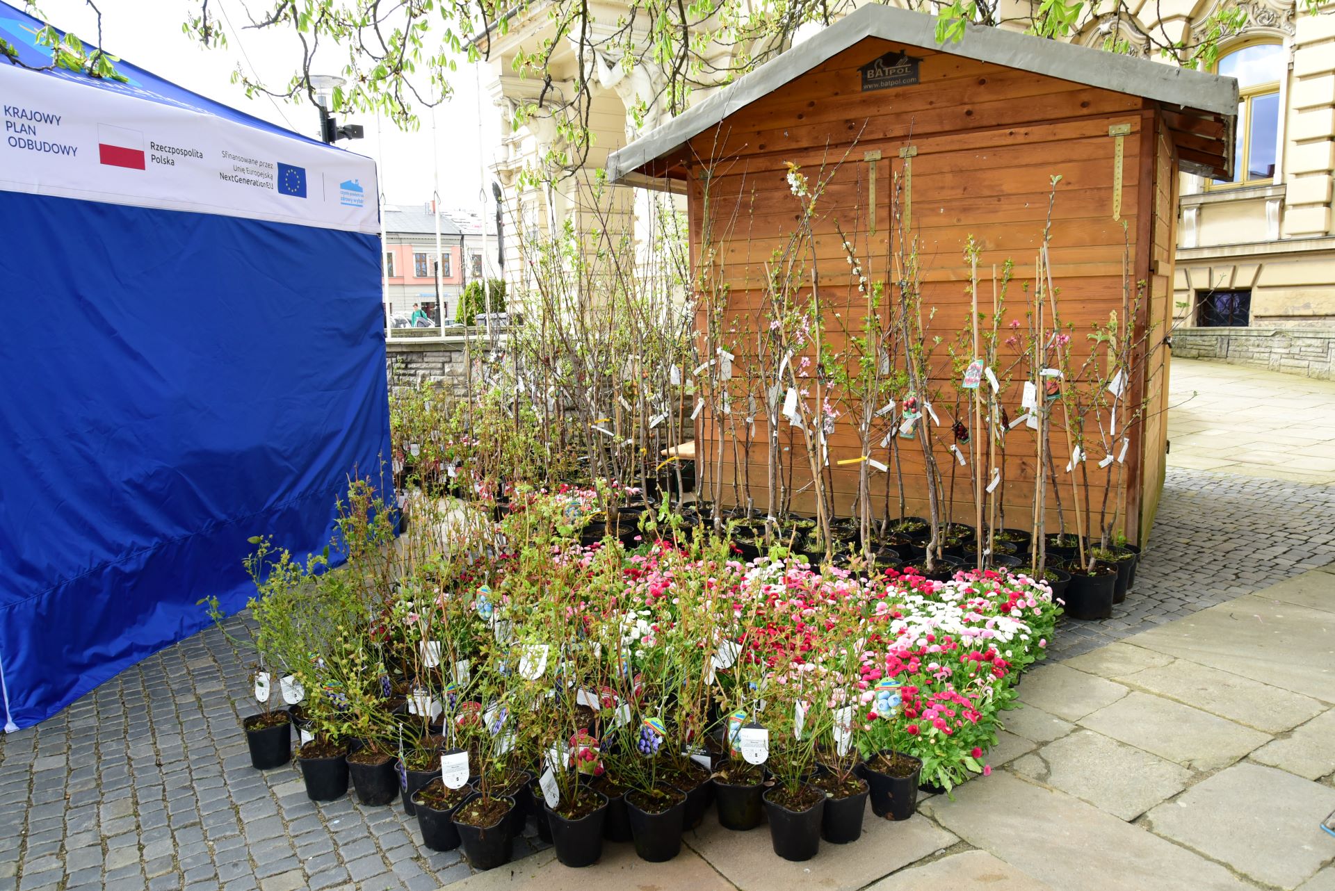 Wydział Komunalnej Obsługi Miasta z Wydziałem Środowiska przygotował ekostoisko na którym można było otrzymać sadzonkę drzewa owocowego, krzewy i wiosenne stokrotki. Podczas wydarzenia rozdaliśmy 600 sadzonek. Ponadto dla dzieci i młodzieży zorganizowano ekologiczne warsztaty z tworzenia wianków i eko-ozdób.