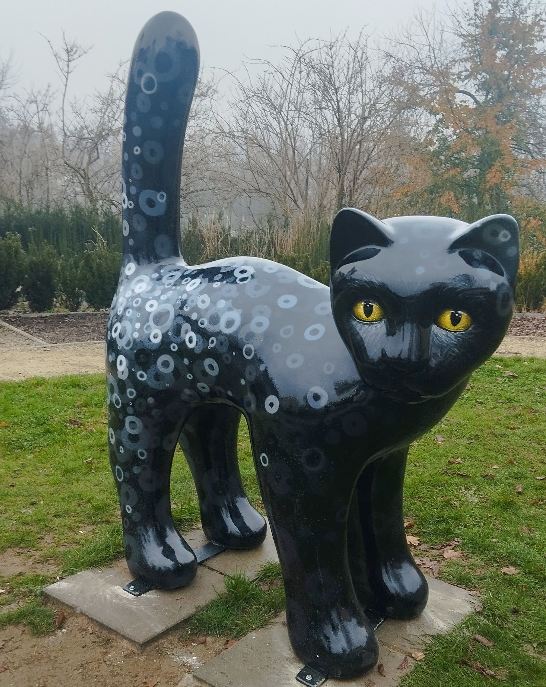 Dzięki naszemu utalentowanemu artyście, Mgr Morsowi, kot zyskał nowe, zachwycające oblicze. Proces renowacji obejmował staranne szlifowanie, uzupełnienie drobnych ubytków, wielowarstwowe lakierowanie oraz aplikację specjalistycznego podkładu. Po zakończeniu tych zabiegów, magister Mors na nowo ozdobił figurę, tworząc świeży i atrakcyjny wzór, który z pewnością przyciągnie uwagę zarówno stałych bywalców, jak i nowych odwiedzających.