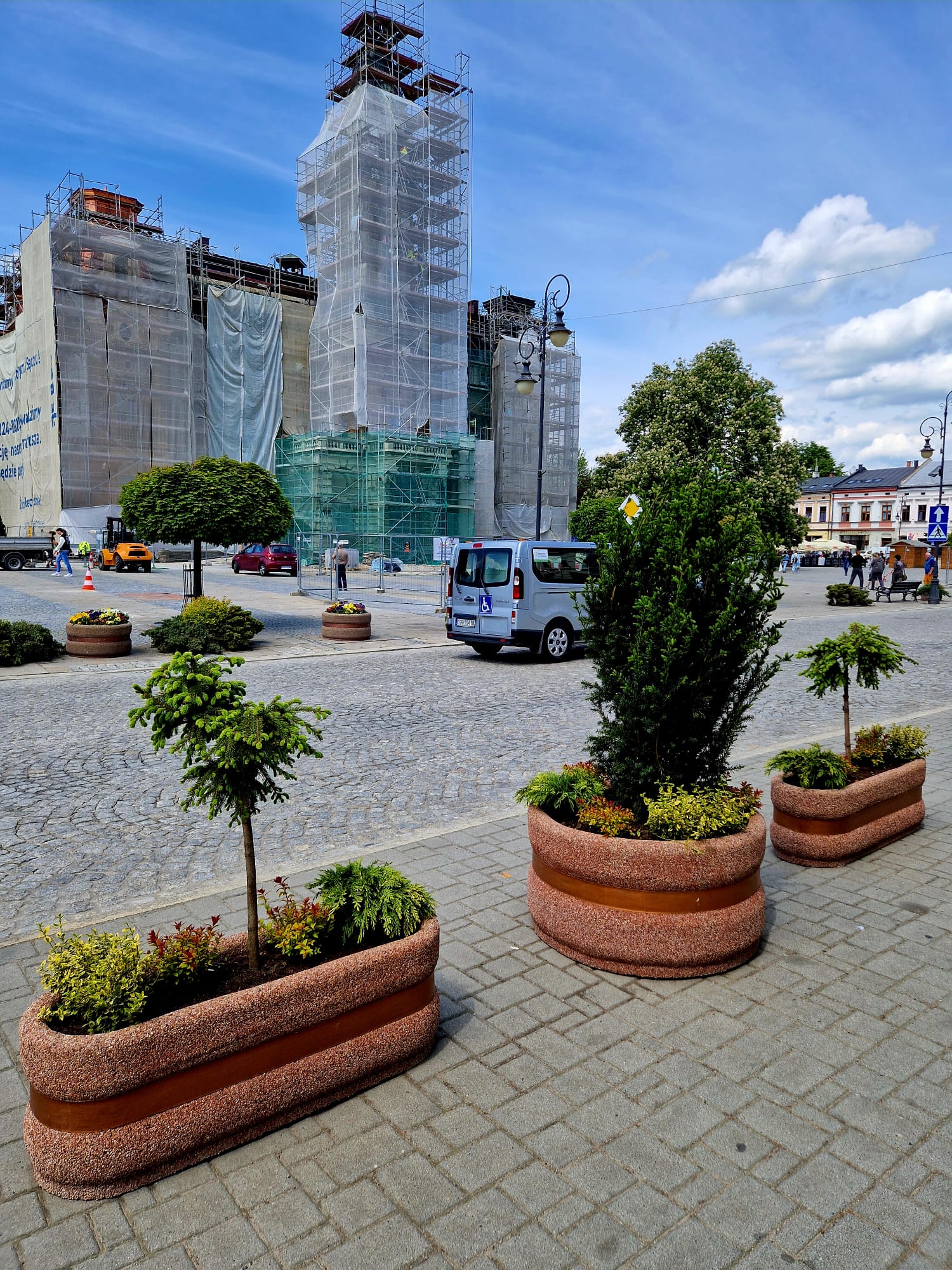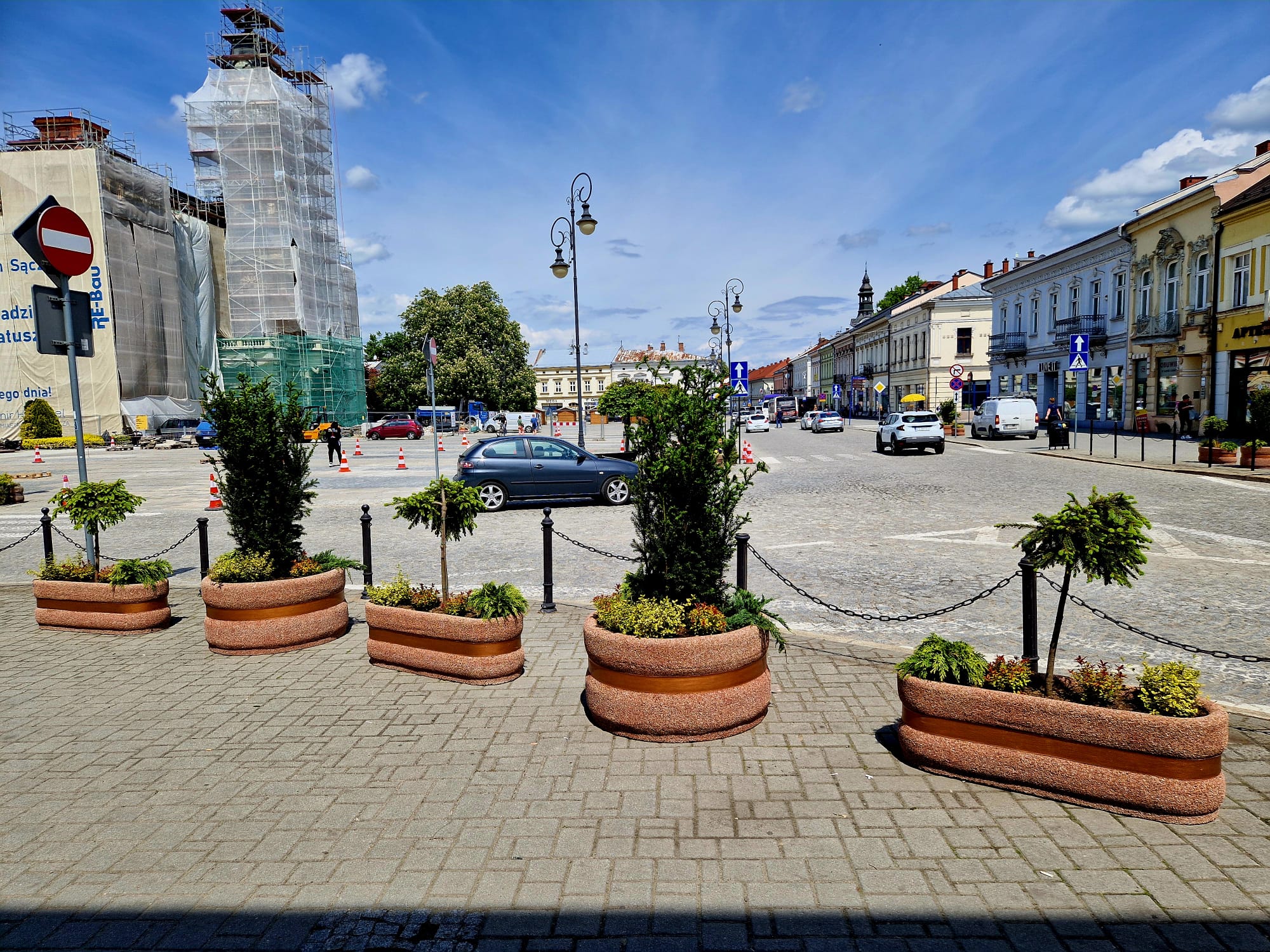 Wokół płyty Rynku Nowego Sącza pojawiły się w ostatnim czasie nowe nasadzenia krzewów. Rośliny zostały posadzone w 18 betonowych donicach, tworząc kompozycje roślinne.