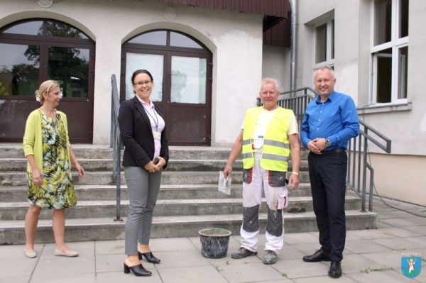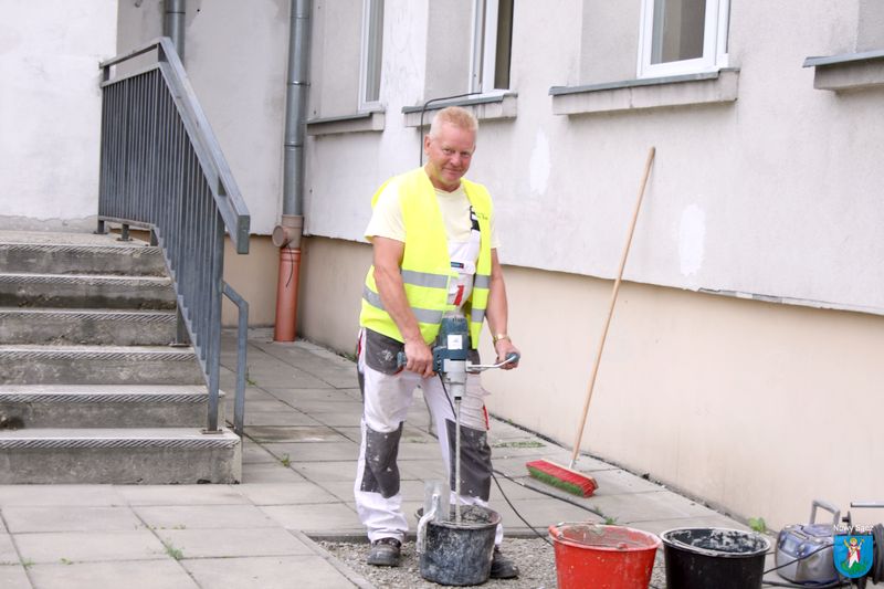 Pracowników grupy odwiedził prezydent Ludomir Handzel w towarzystwie dyrektor Wydziału Inwestycji Marty Poremby i dyrektor SP nr 8 Beaty Kozieł. Zadaniem, które wykonują, jest remont schodów i renowacja podjazdu dla niepełnosprawnych w Szkole Podstawowej nr 8 z Oddziałami Integracyjnymi.