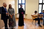 Po przecięciu wstęgi rozległ się wystrzał i na gości spadł deszcze konfetti. Następnym punktem programu było zwiedzanie każdego z odnowionych pomieszczeń, od parteru po II piętro. Goście zajrzeli między innymi do studia muzycznego, pracowni wyrobów z gliny, gdzie zamontowano nowoczesny piec do jej wypalania i sal ćwiczeń muzycznych oraz pracowni językowej. Zwiedzający nie ominęli także nowoczesnej pracowni komputerowej i scenograficznej.