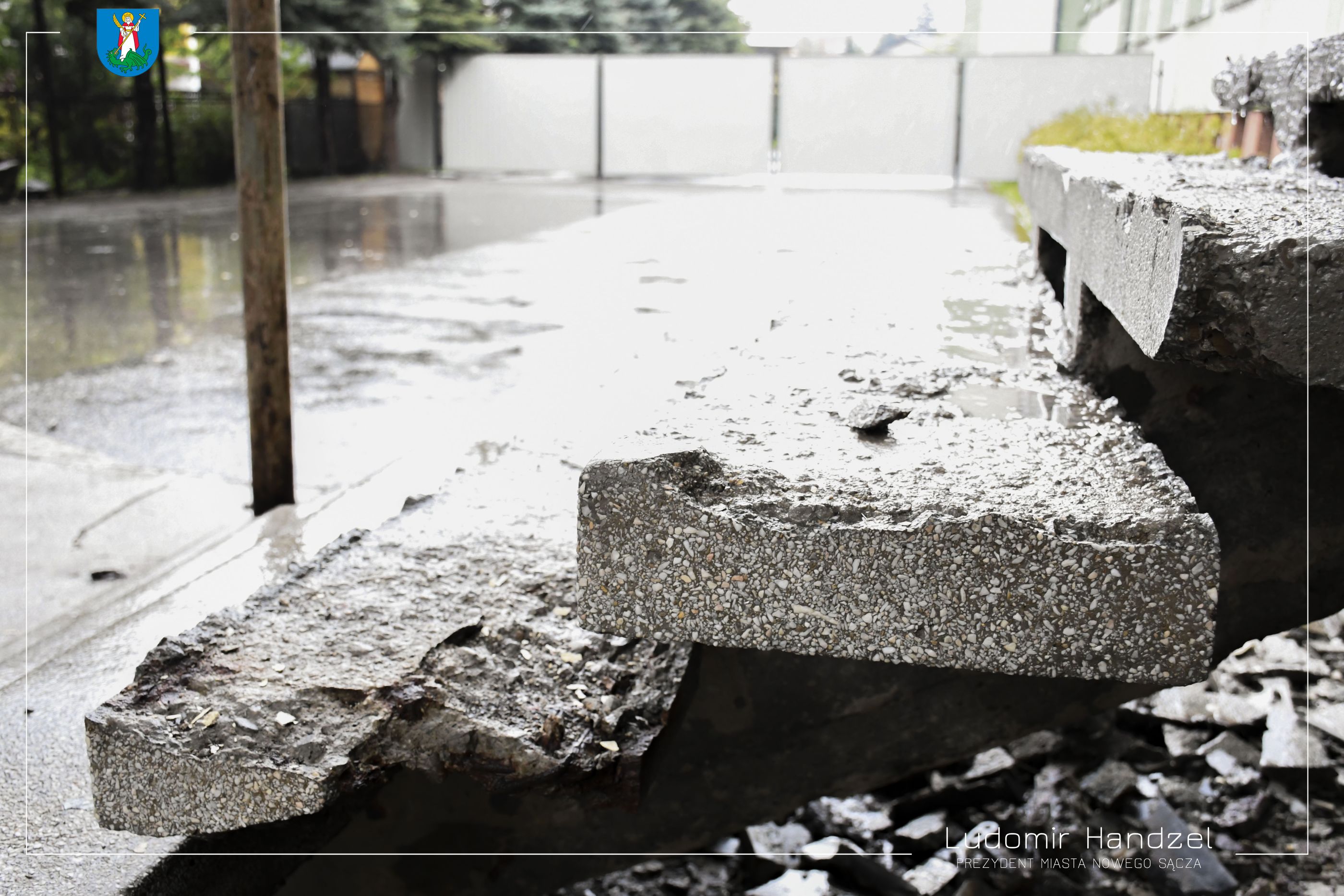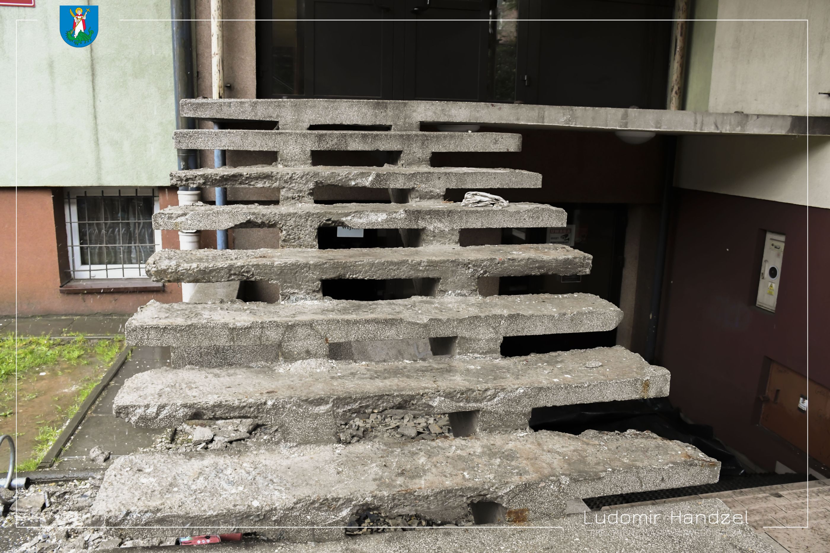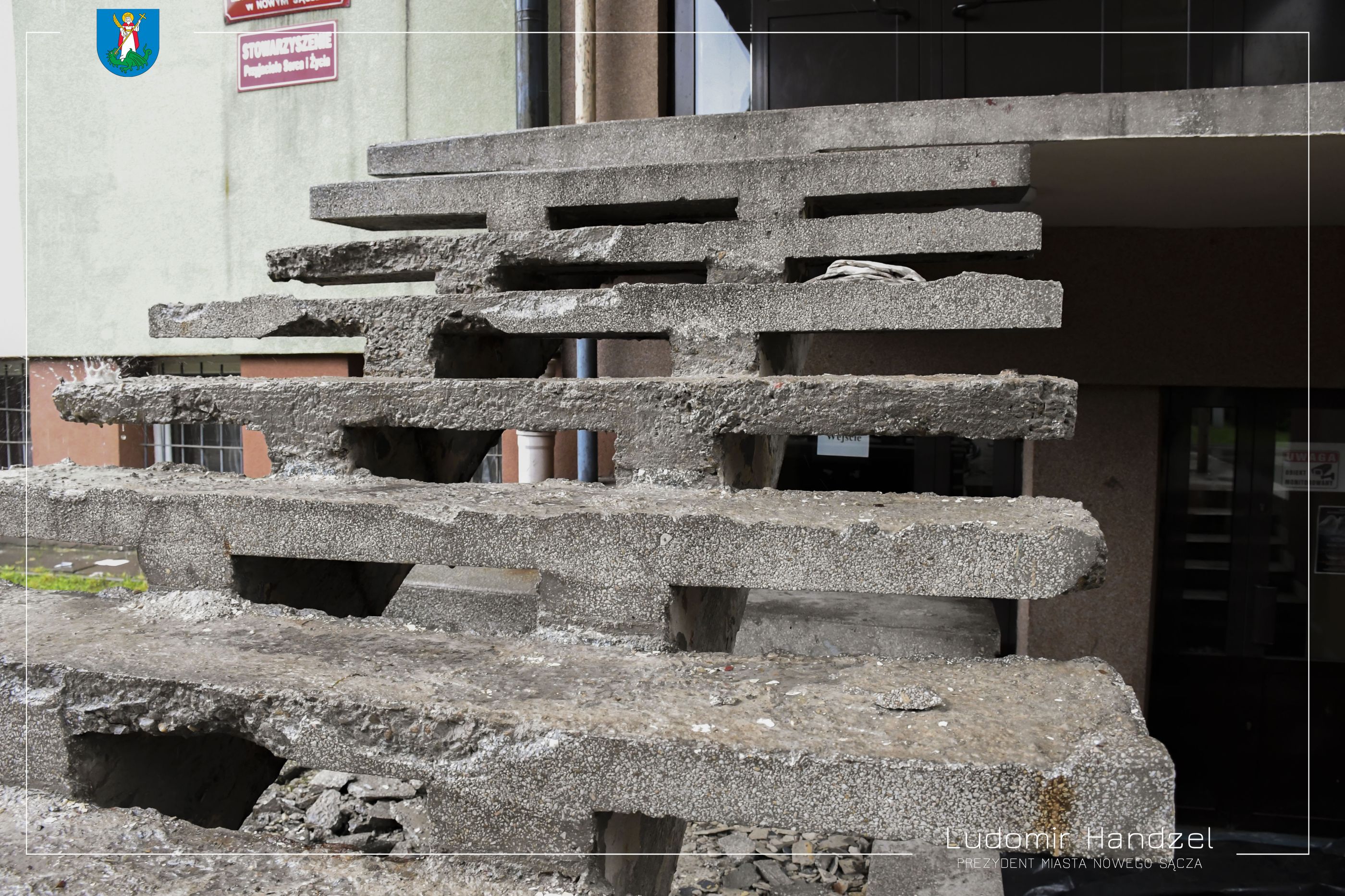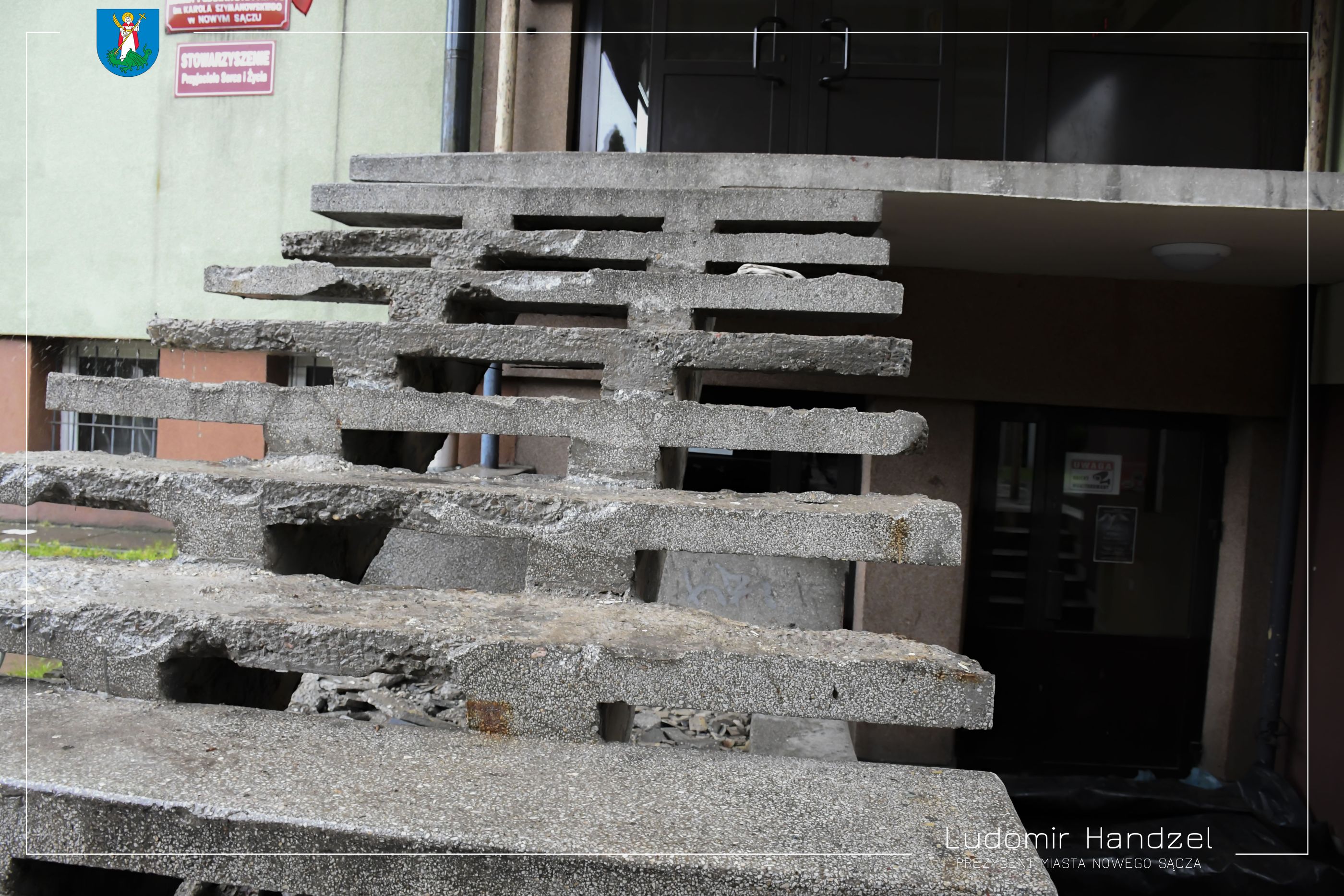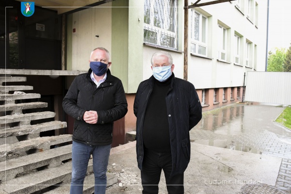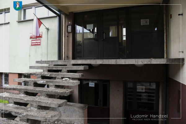 Trwają prace remontowe w Szkole Podstawowej nr 18. Zakres prac obejmuje remont zniszczonych schodów wejściowych do budynku i zadaszenia. Postępom prac przyglądał się prezydent Ludomir Handzel wraz z radnym Józefem Hojnorem.