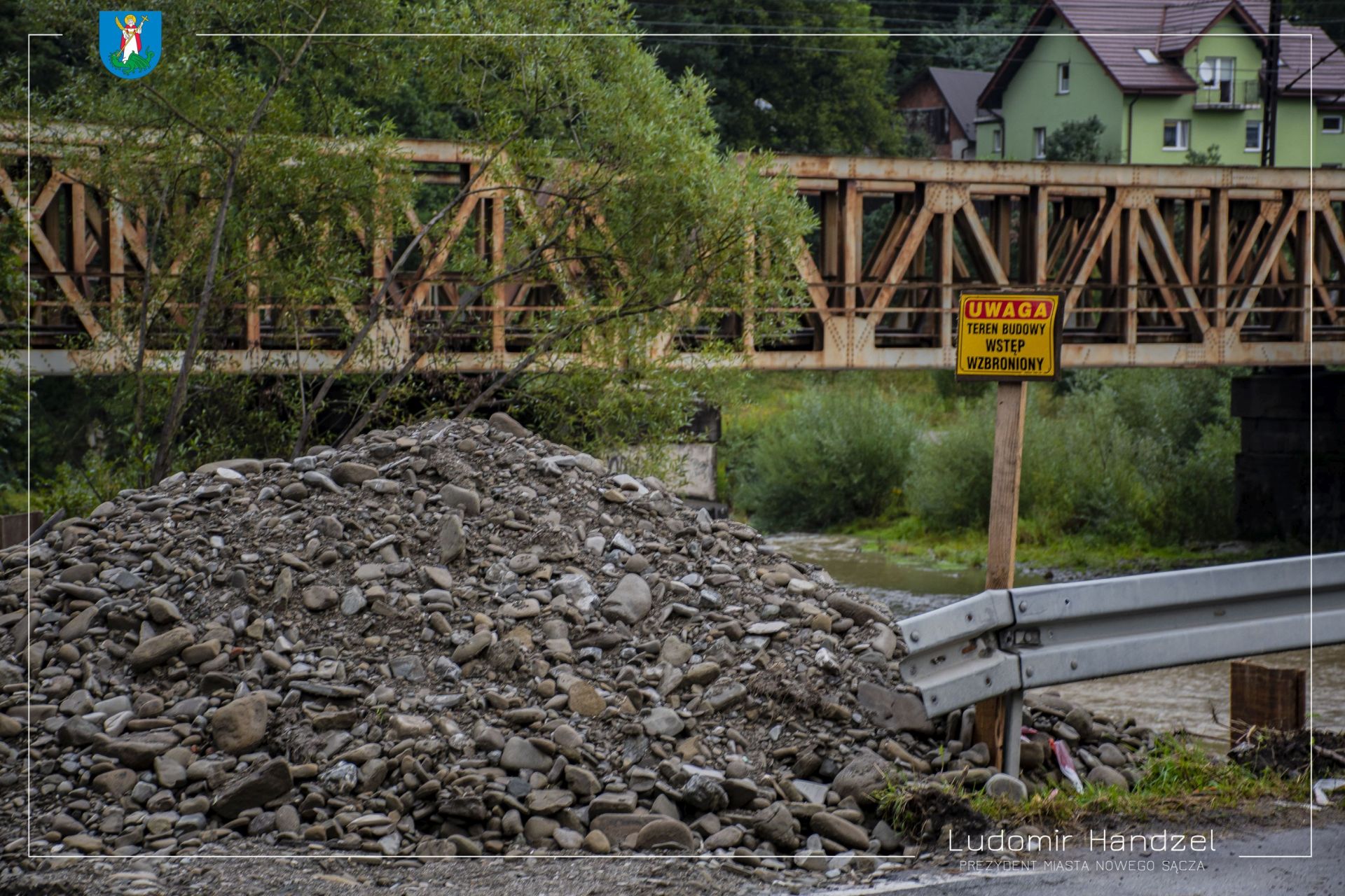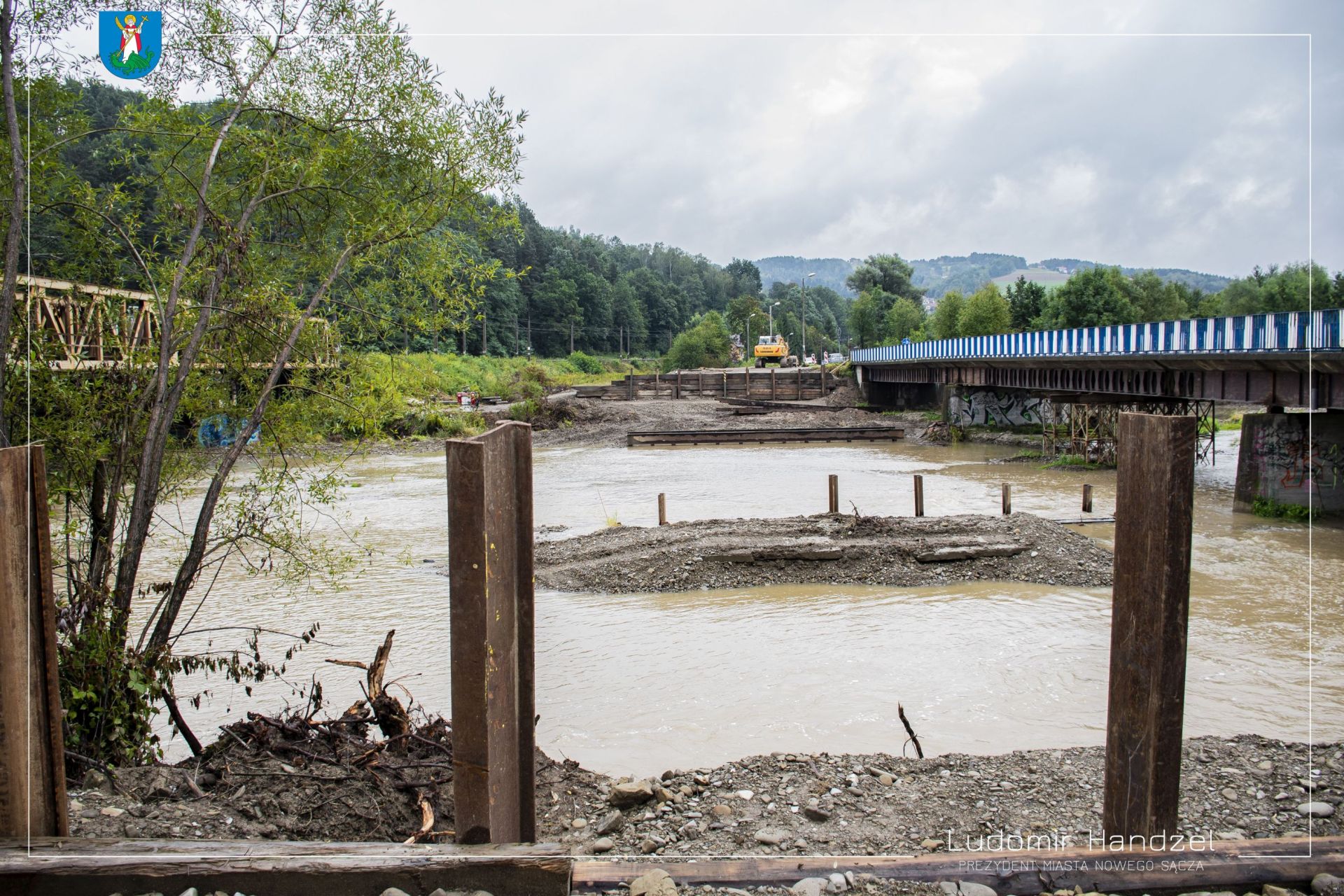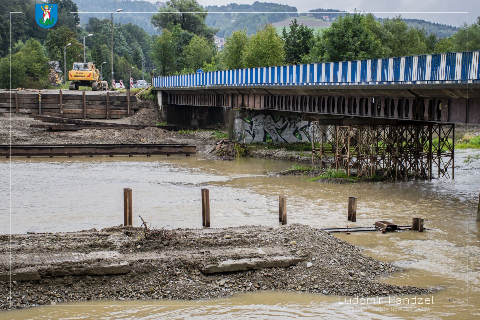 Trwają prace przy budowie mostu tymczasowego na rzece Kamienica-Nawojowska. Prace idą zgodnie z planem. Postępom prac przyglądał się prezydent Ludomir Handzel.