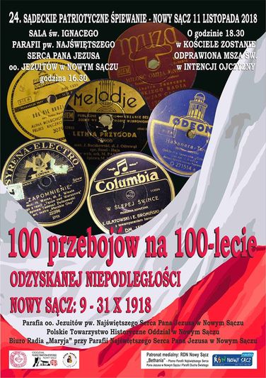 O godzinie 16:30 w sali Ignacego w parafii pod wezwaniem Najświętszego Serca Pana Jezusa w Nowym Sączu rozpocznie się 24. Sądeckie Patriotyczne Śpiewanie. O 18:30 w kościele kolejowym odbędzie się msza św. w intencji Ojczyzny.