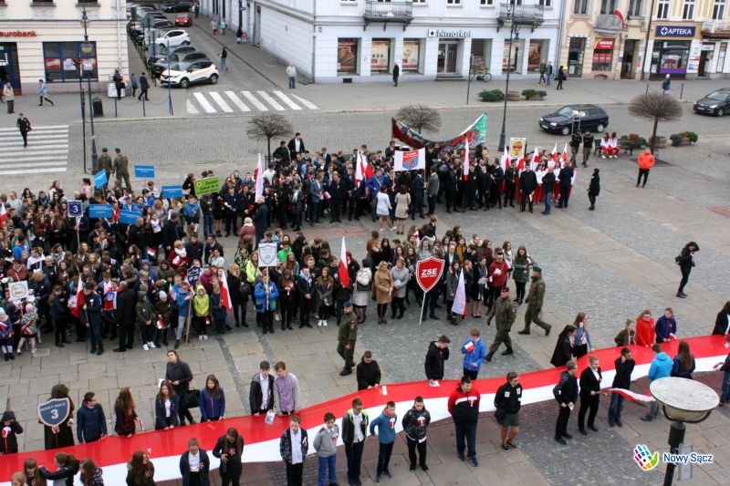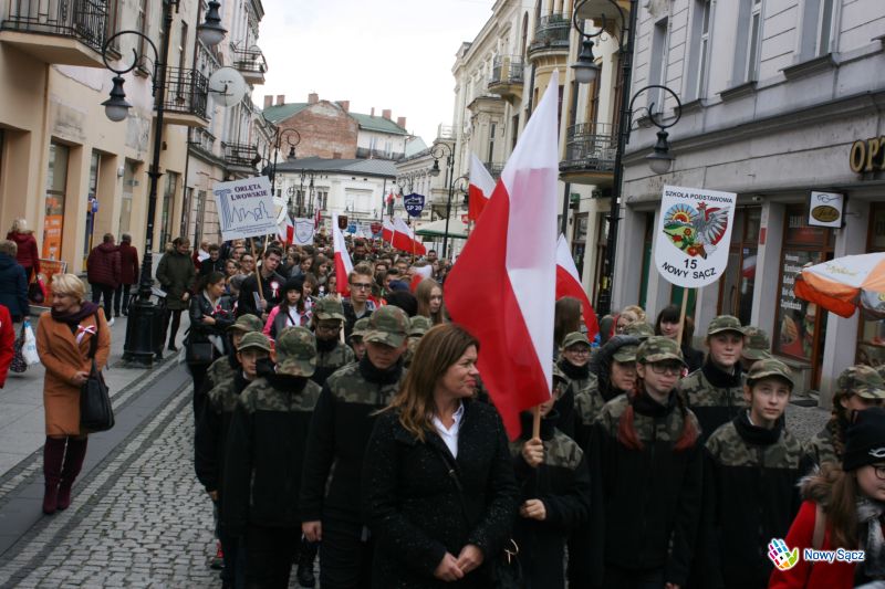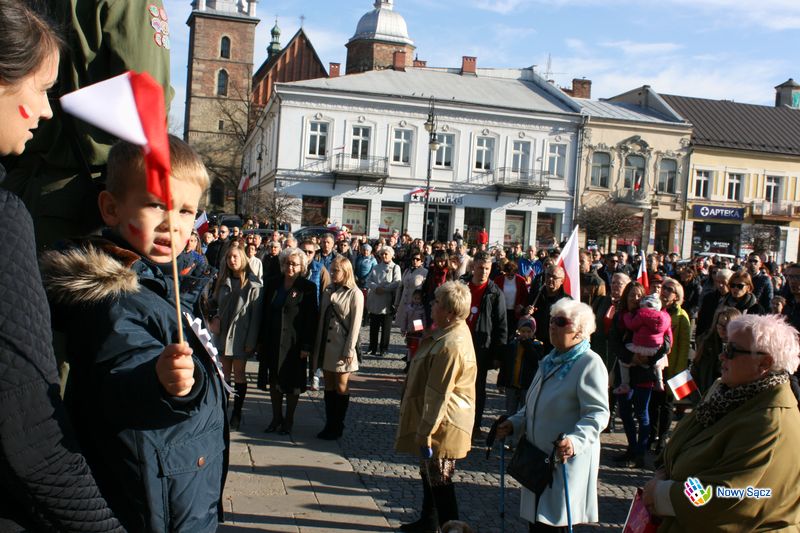 Przy okazji dzisiejszego święta wspominamy, że sądeczanie mają szczególny powód do zaakcentowania. Nowy Sącz wybił się na niepodległość kilkanaście dni wcześniej, niż pozostałe części Polski. 31 października 1918 roku w spontanicznej akcji członków podziemnych grup Polskiej Organizacji Wojskowej, byłych legionistów i polskich oficerów armii austriackiej rozbrojono i przepędzono Austriaków z miasta, a sądeccy kolejarze na budynku dworca wywiesili transparent z napisem: "Wolna, Zjednoczona, Niepodległa Polska”.