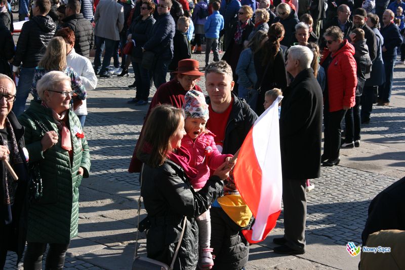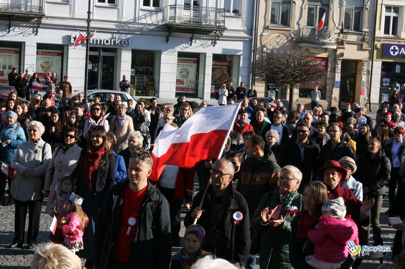 Sądeczanie wzięli również udział w akcji "Niepodległa do Hymnu!" na sądeckim Rynku. W samo południe z fontanny przy ratuszu popłynęły dźwięki Mazurka Dąbrowskiego, a sądeczanie wspólnie odśpiewali hymn państwowy.