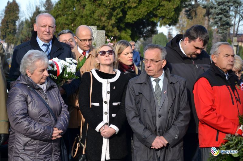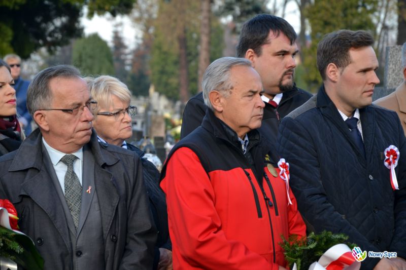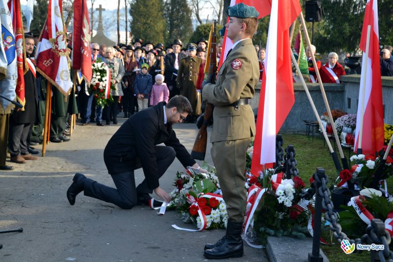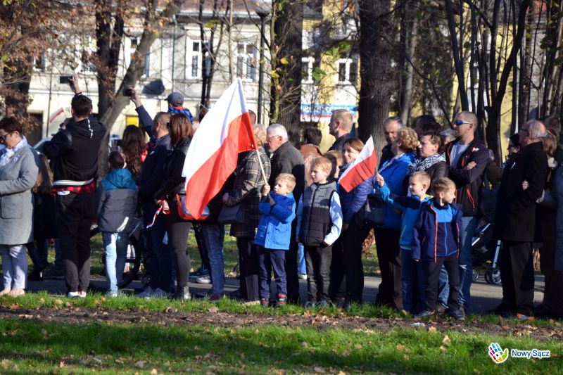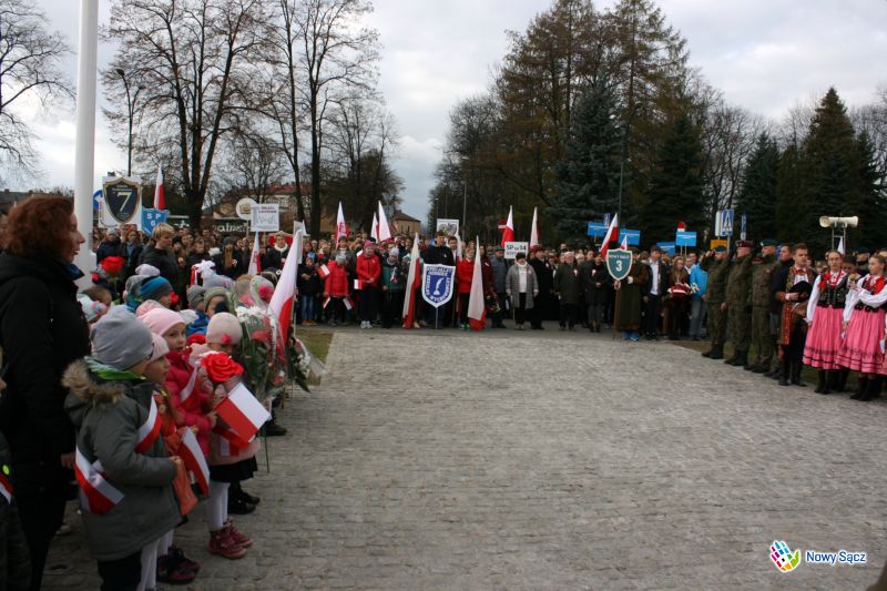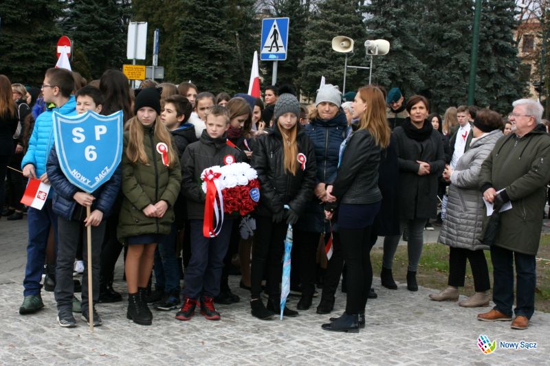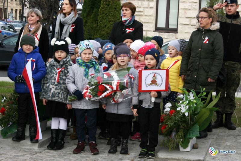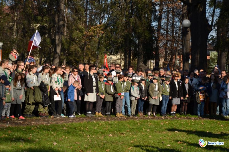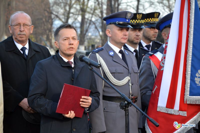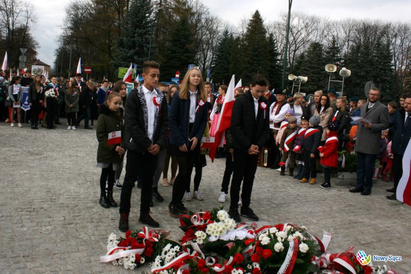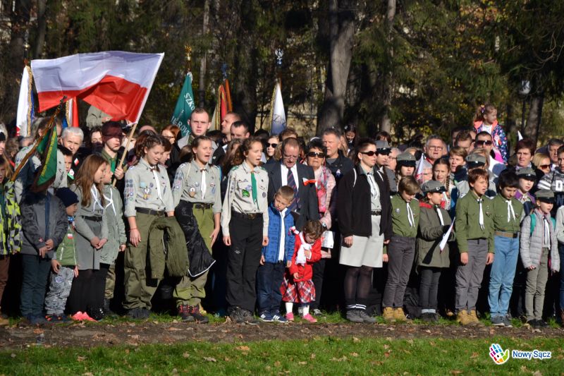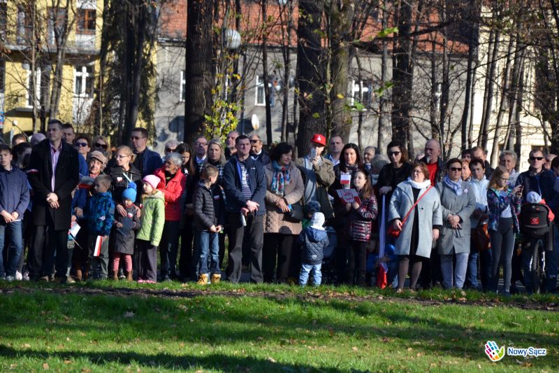 Rocznicowe obchody odzyskania przez Polskę niepodległości rozpoczęły się od złożenia przez zastępcę prezydenta Nowego Sącza Wojciecha Piecha, w asyście komendanta Straży Miejskiej Dariusza Górskiego, kwiatów pod pomnikiem Józefa Piłsudskiego przy Alejach Wolności oraz zapalenia znicza na grobie Bronisława Pierackiego na Starym Cmentarzu.