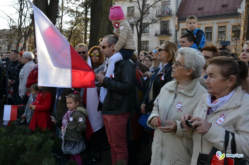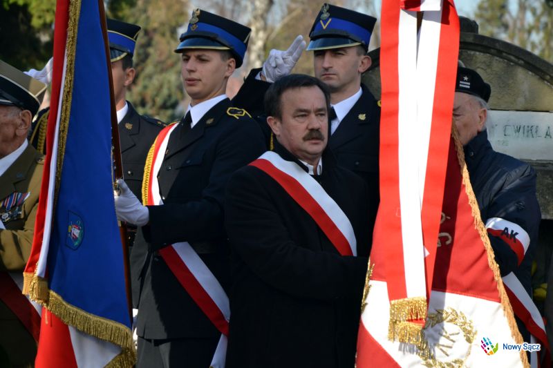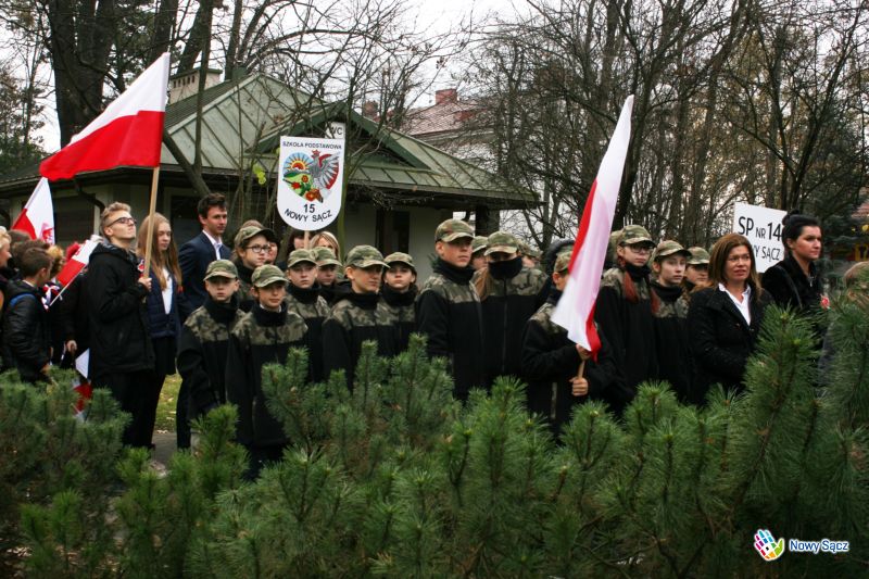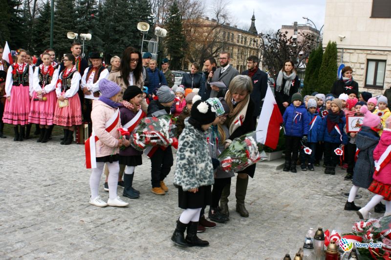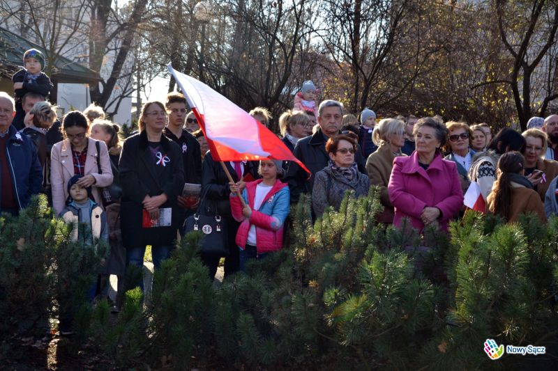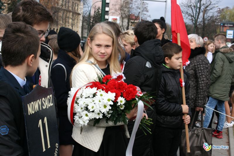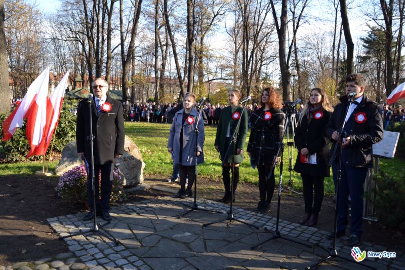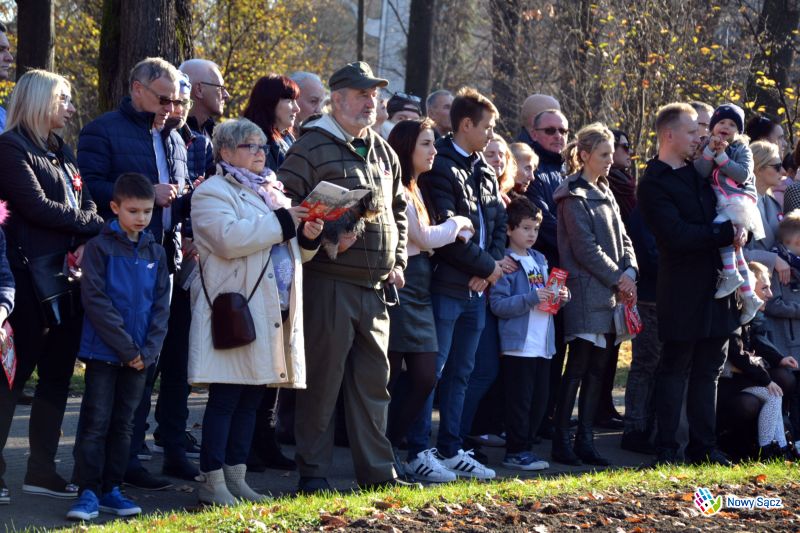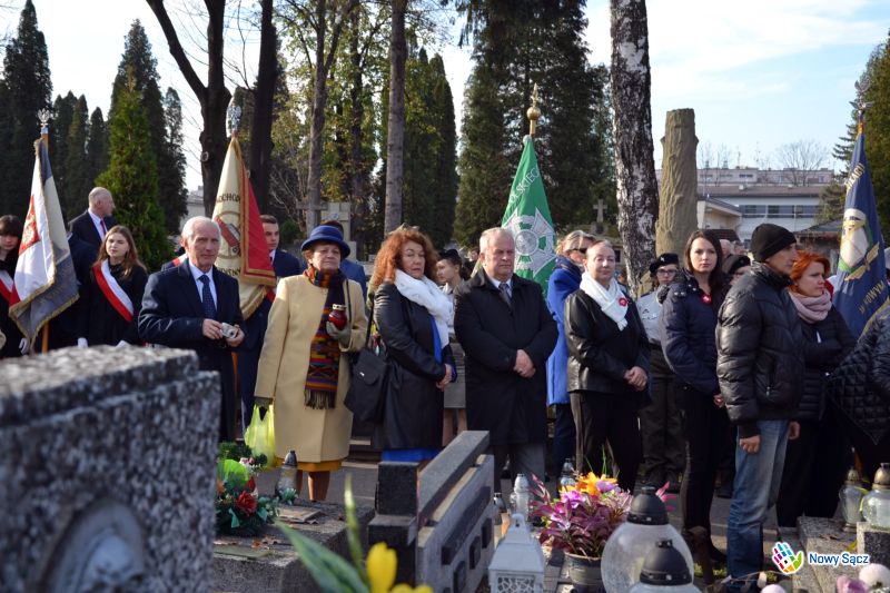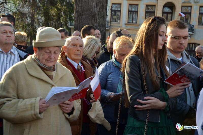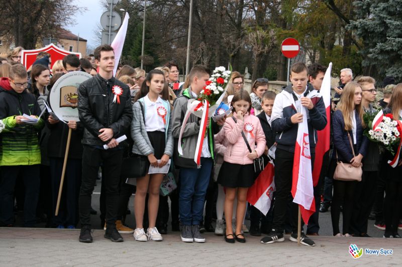 Rocznicowe obchody odzyskania przez Polskę niepodległości rozpoczęły się od złożenia przez zastępcę prezydenta Nowego Sącza Wojciecha Piecha, w asyście komendanta Straży Miejskiej Dariusza Górskiego, kwiatów pod pomnikiem Józefa Piłsudskiego przy Alejach Wolności oraz zapalenia znicza na grobie Bronisława Pierackiego na Starym Cmentarzu.