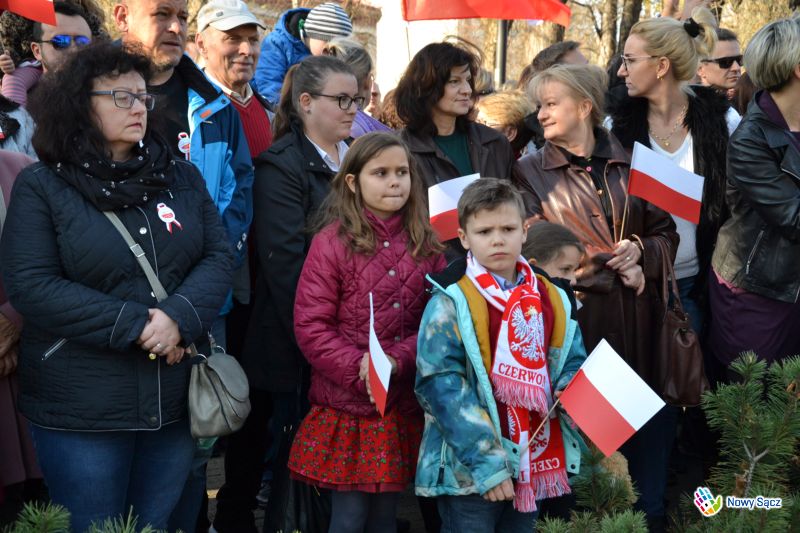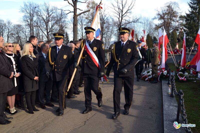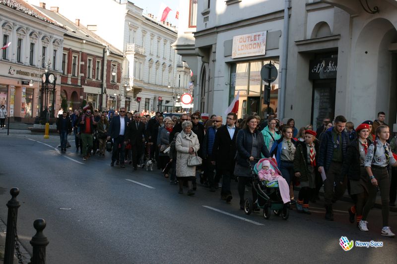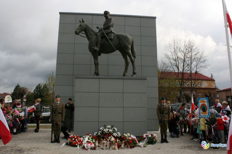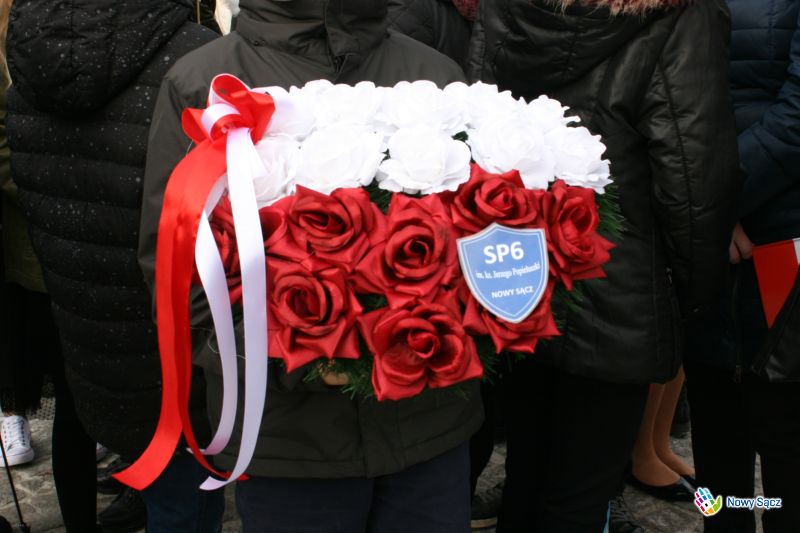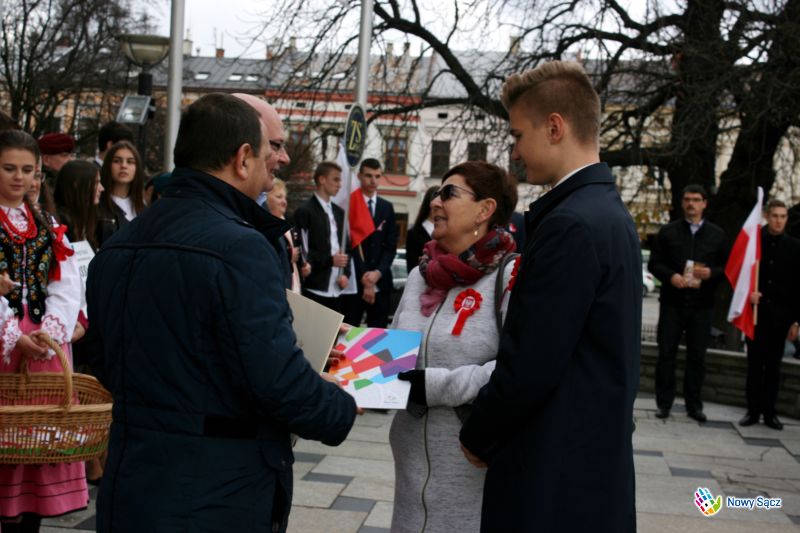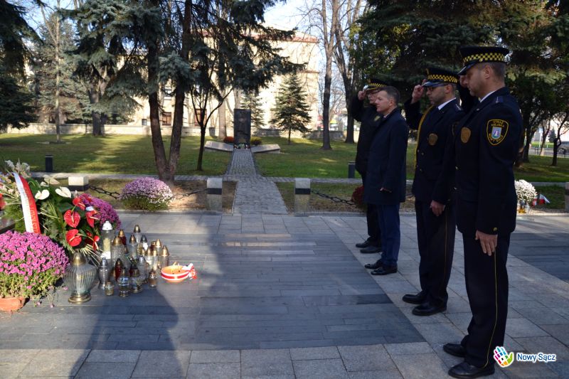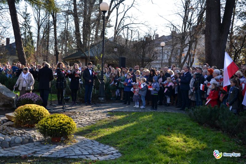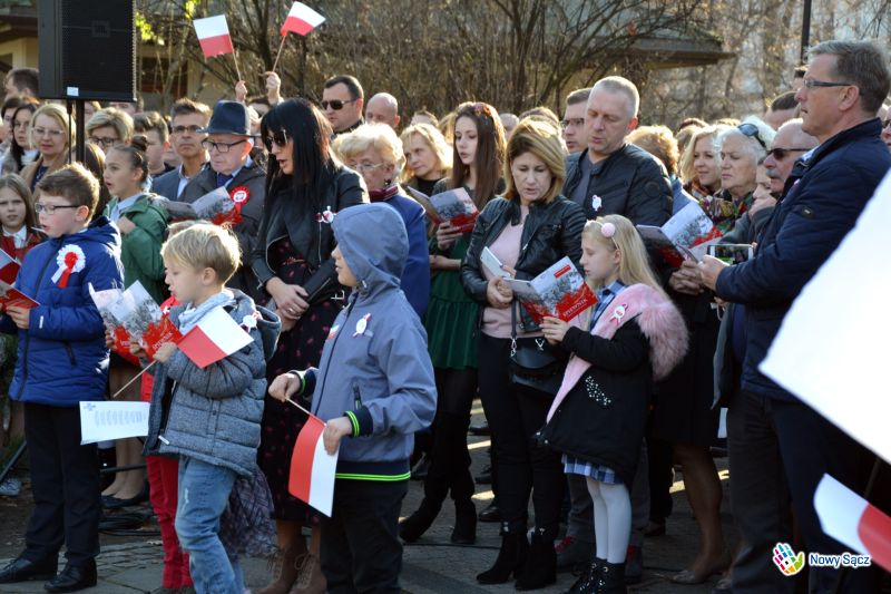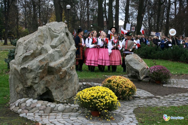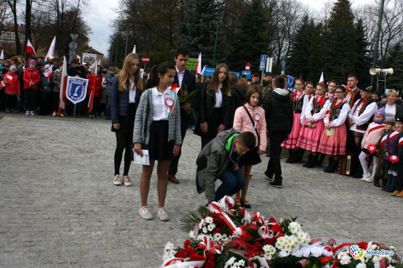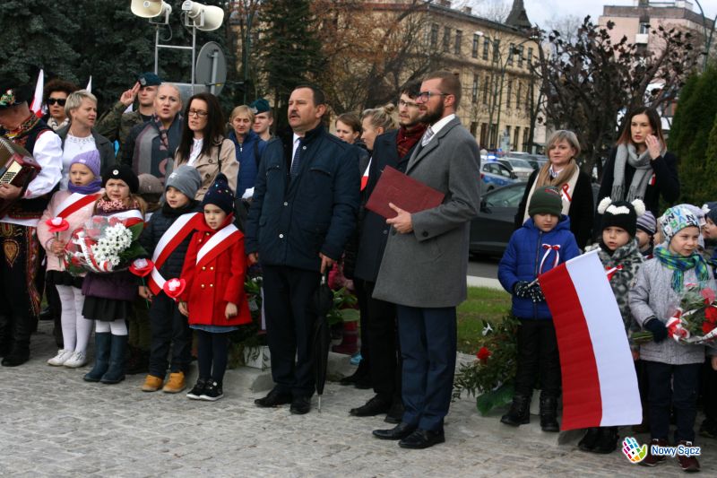 Rocznicowe obchody odzyskania przez Polskę niepodległości rozpoczęły się od złożenia przez zastępcę prezydenta Nowego Sącza Wojciecha Piecha, w asyście komendanta Straży Miejskiej Dariusza Górskiego, kwiatów pod pomnikiem Józefa Piłsudskiego przy Alejach Wolności oraz zapalenia znicza na grobie Bronisława Pierackiego na Starym Cmentarzu.