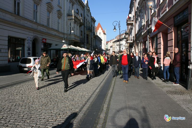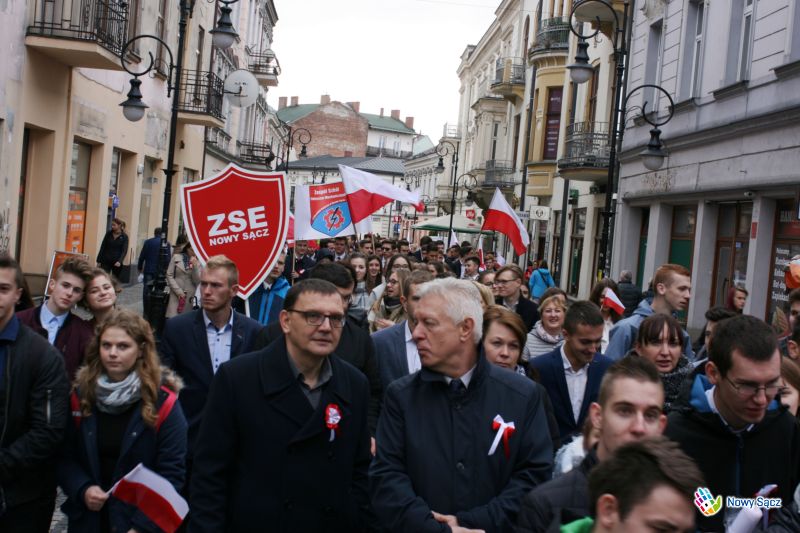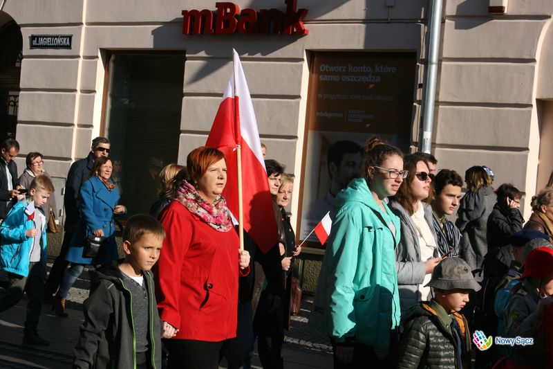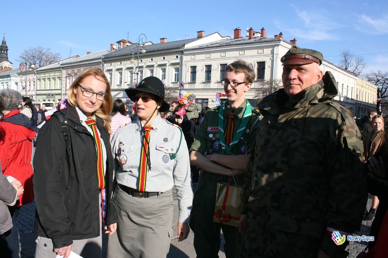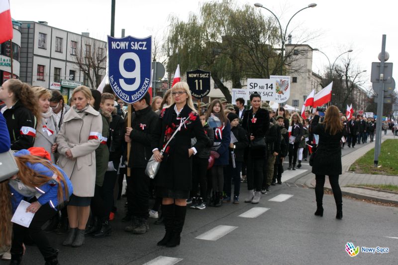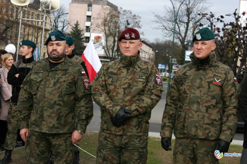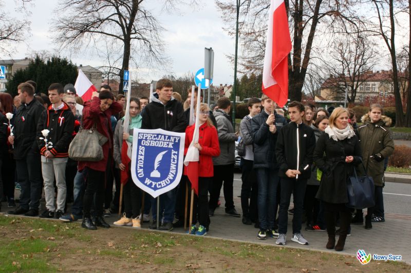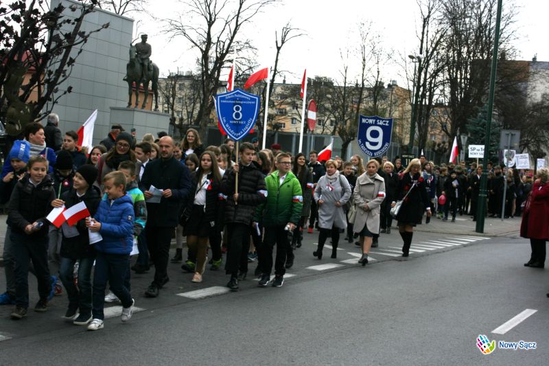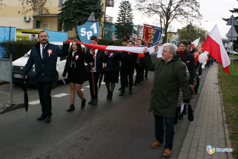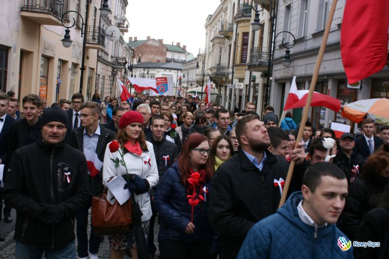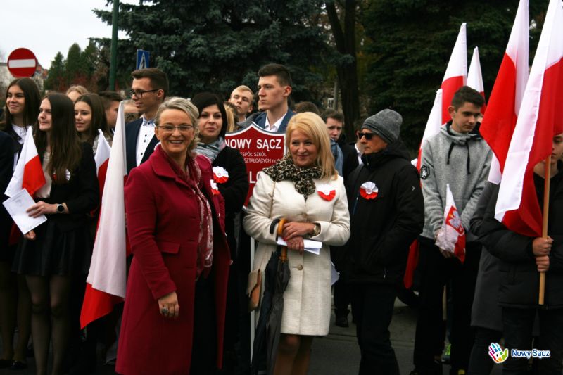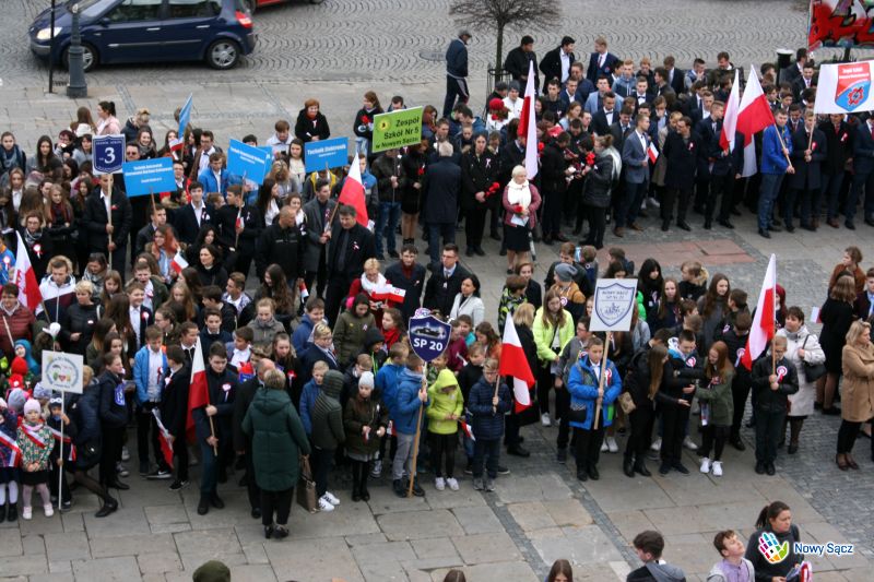 Rocznicowe obchody odzyskania przez Polskę niepodległości rozpoczęły się od złożenia przez zastępcę prezydenta Nowego Sącza Wojciecha Piecha, w asyście komendanta Straży Miejskiej Dariusza Górskiego, kwiatów pod pomnikiem Józefa Piłsudskiego przy Alejach Wolności oraz zapalenia znicza na grobie Bronisława Pierackiego na Starym Cmentarzu.