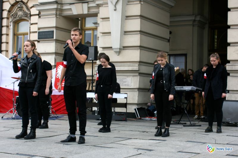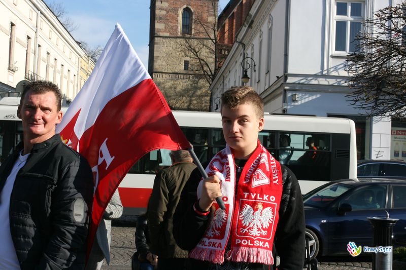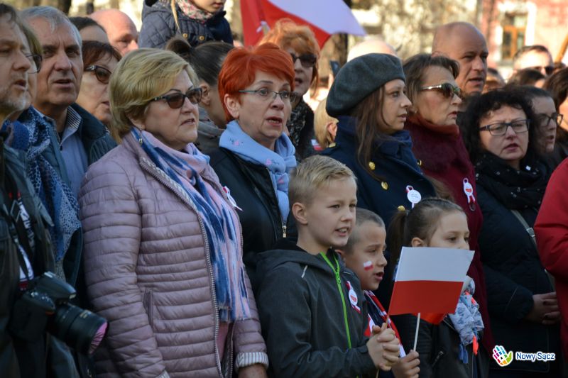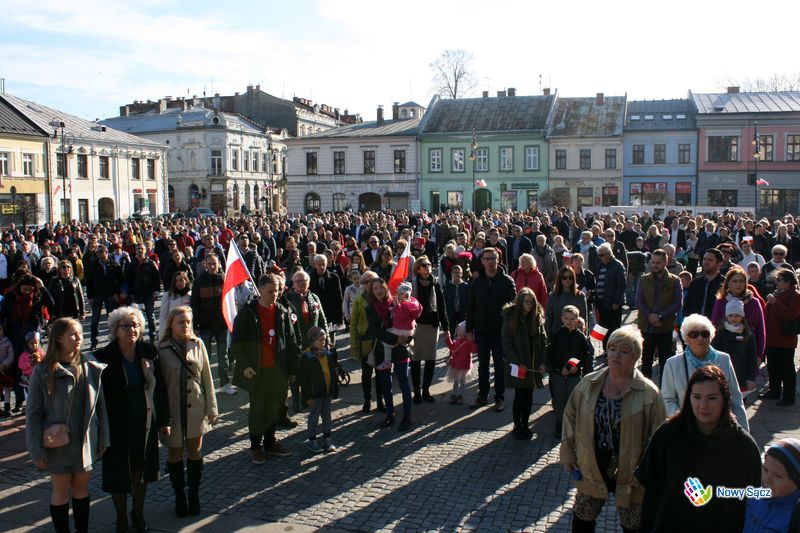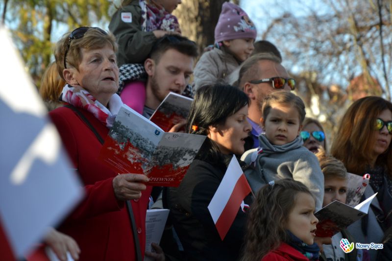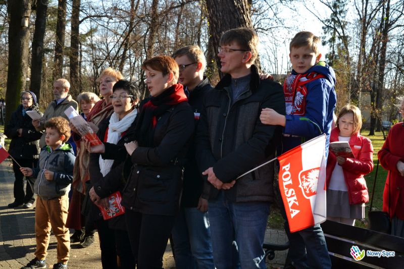 Pod Dębem Wolności na Sądeckich Plantach licznie zgromadzeni sądeczanie wzięli udział w ogólnopolskiej akcji "Niepodległa do Hymnu!". Wspólnie z udziałem Parafialno-Gminnej Orkiestry Dętej z Łososiny Dolnej pod batutą Tadeusza Szkarłata, zaśpiewali Mazurka Dąbrowskiego.