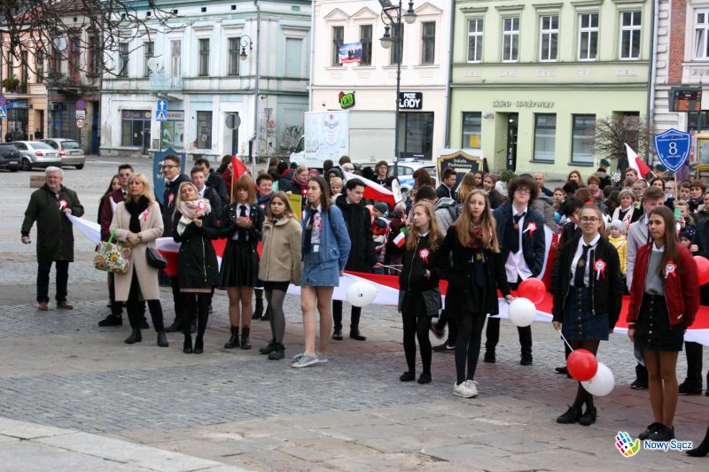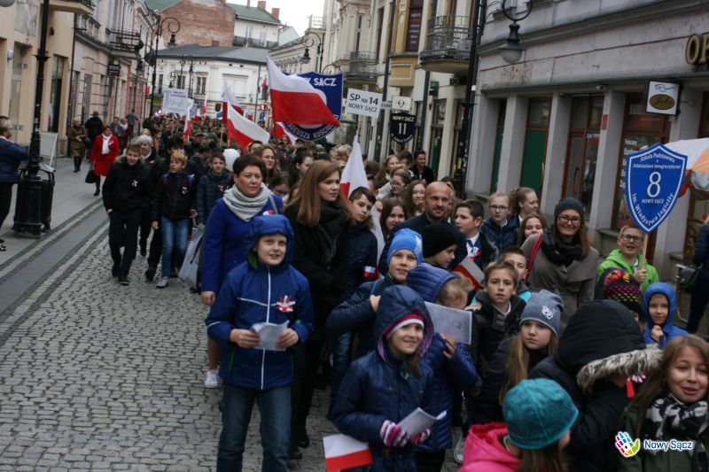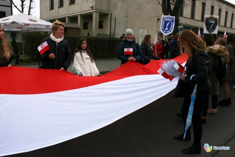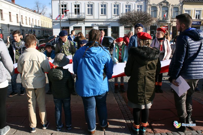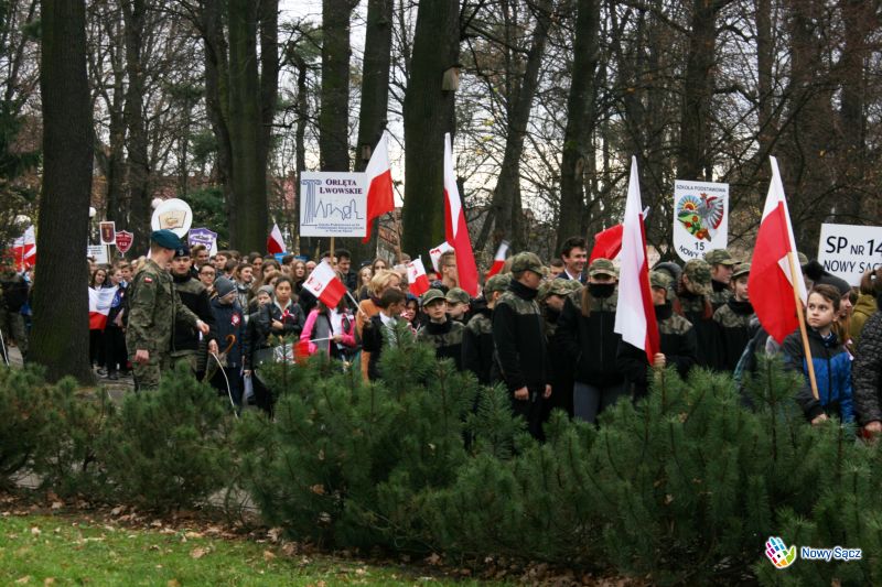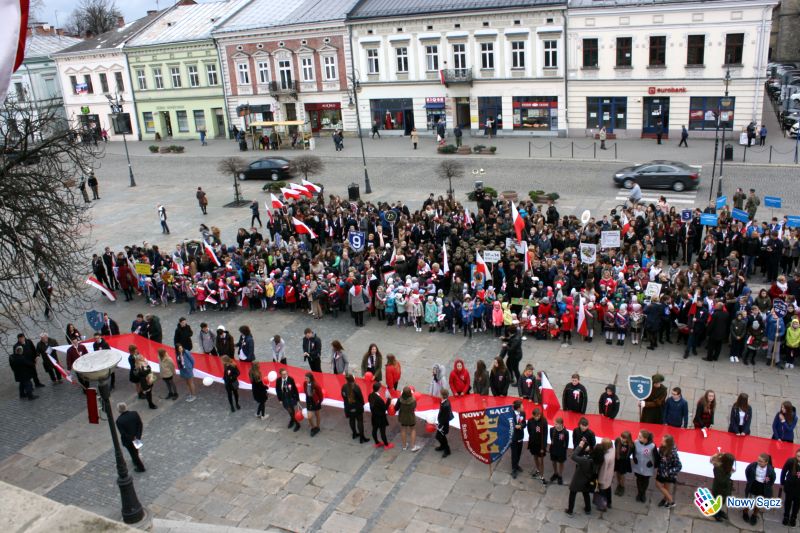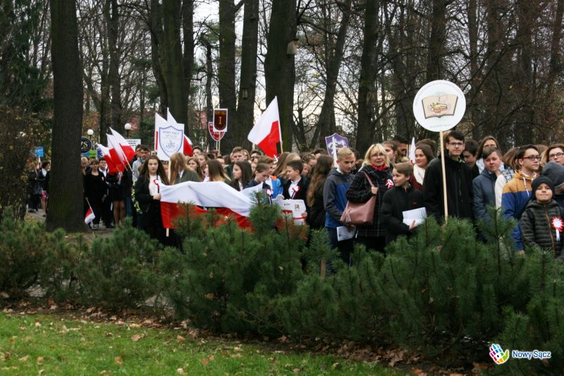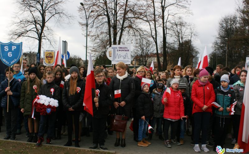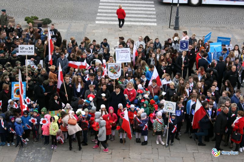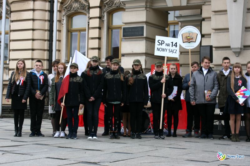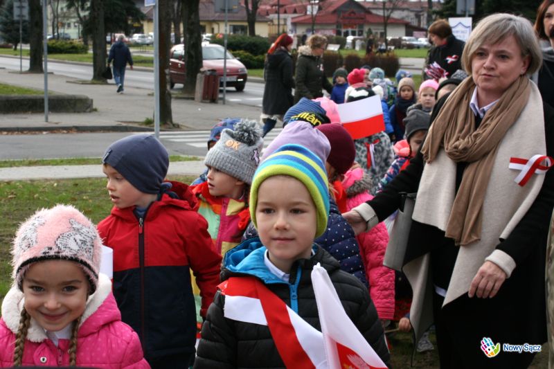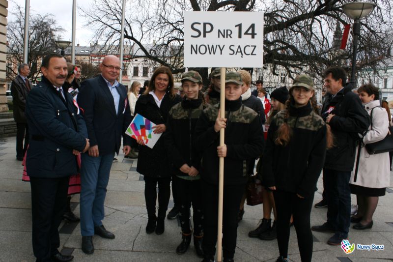 Rozpoczęcie wydarzenia nastąpiło pod pomnikiem marszałka Józefa Piłsudskiego, gdzie zebrali się uczniowie sądeckich przedszkoli, szkół podstawowych i ponadgimnazjalnych wraz z nauczycielami i dyrektorami.
