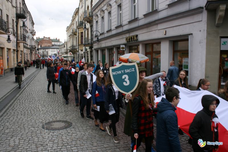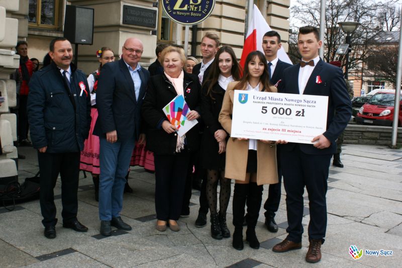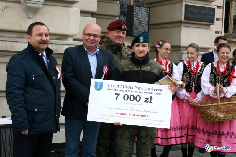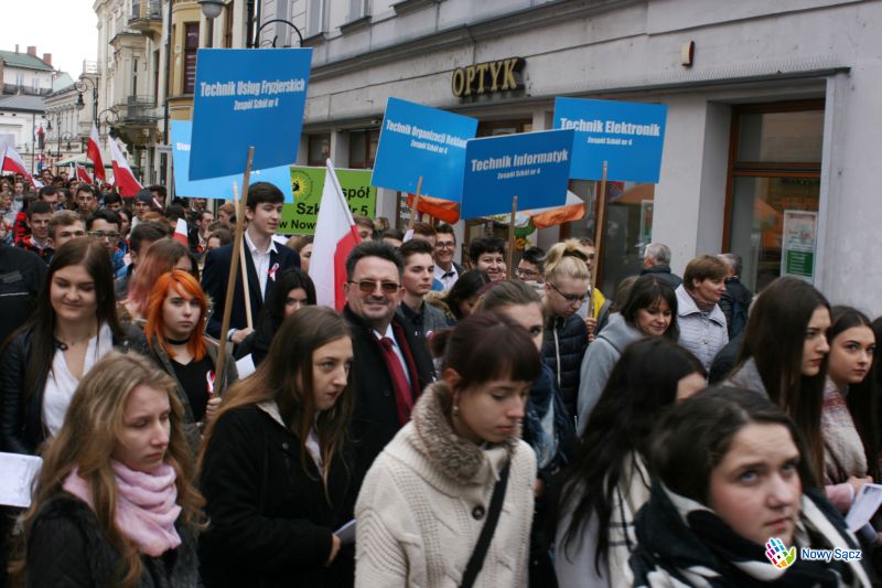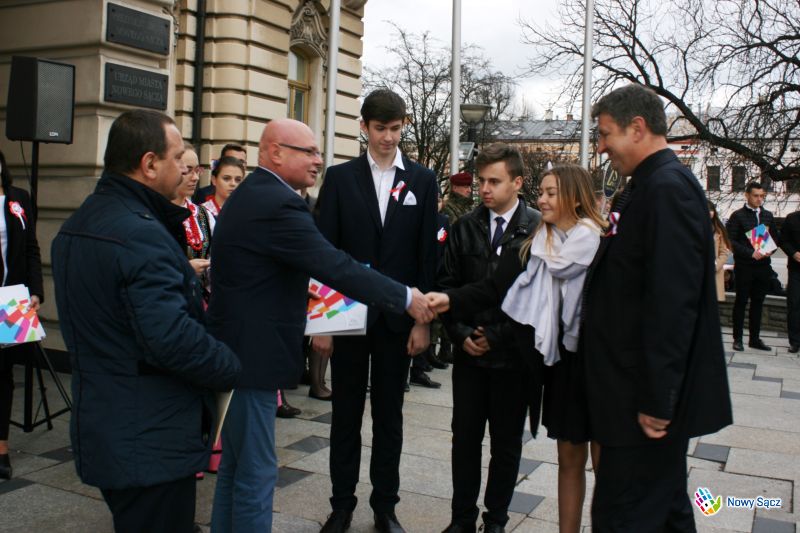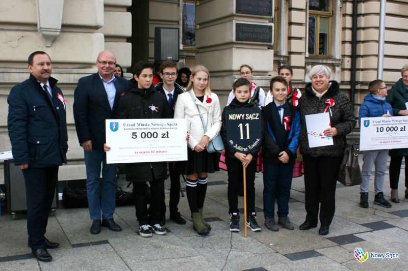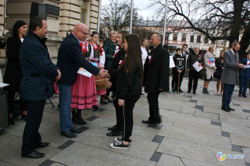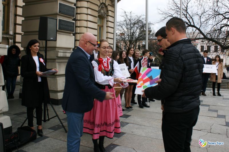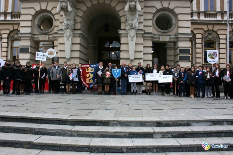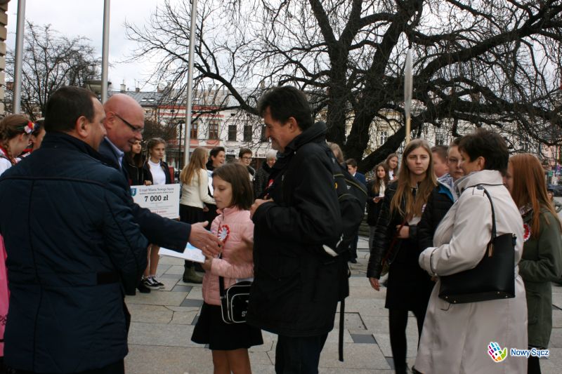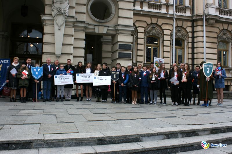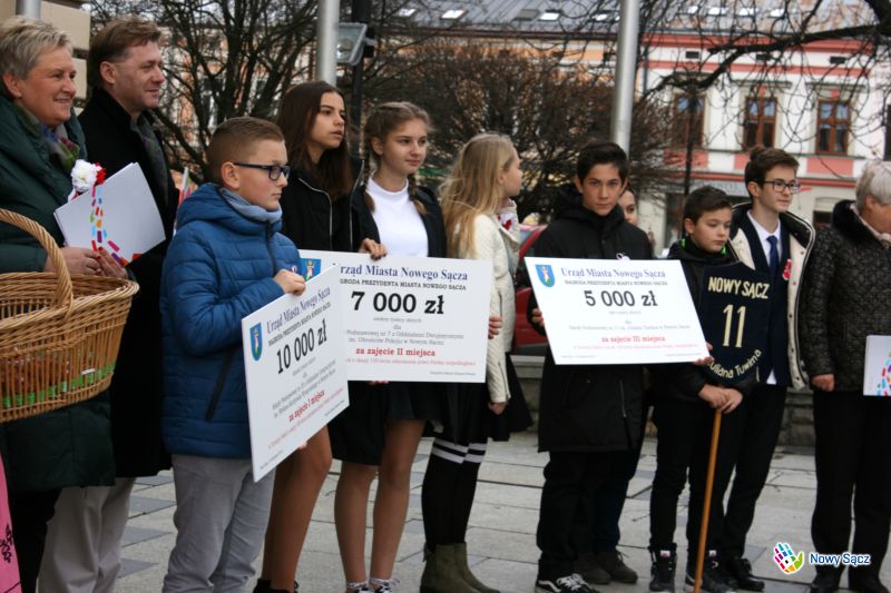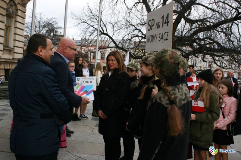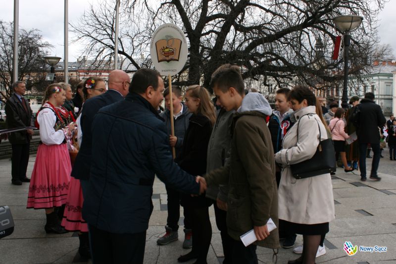 Następnie uczniowie przemaszerowali Alejami Wolności na sądeckie Planty. Na sądeckim Rynku natomiast uczestnicy spotkali się z prezydentem miasta Nowego Sącza Ryszardem Nowakiem oraz odebrali nagrody.