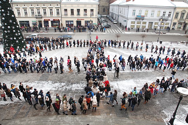 1600 tegorocznych maturzystów zatańczyło w południe poloneza na sądeckim Rynku. Po raz siódmy chodzonego prowadzili tancerze z zespołu „Sądeczanie”, a tuż za nimi wiceprezydenci Bożena Jawor i Jerzy Gwiżdż, sekretarz miasta Marek Oleniacz oraz uczniowie. Ponad 800 par odtańczyło poloneza tradycyjnie do muzyki Wojciecha Kilara z filmu „Pan Tadeusz”. Choreografię przygotował tym razem Dariusz Migacz z Centrum Tańca ADeeM.