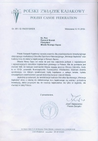 Pisma zapewniające poparcie dla czynionych przez władze Nowego Sącza i Klub Sportowy "Start" starań o rewitalizację - budowę ośrodka sportowego „Sądecka Wenecja ”, prezydent otrzymał od Andrzeja Kraśnickiego, Prezesa Polskiego Komitetu Olimpijskiego oraz Józefa Bejnarowicza, Prezesa Polskiego Związku Kajakowego.