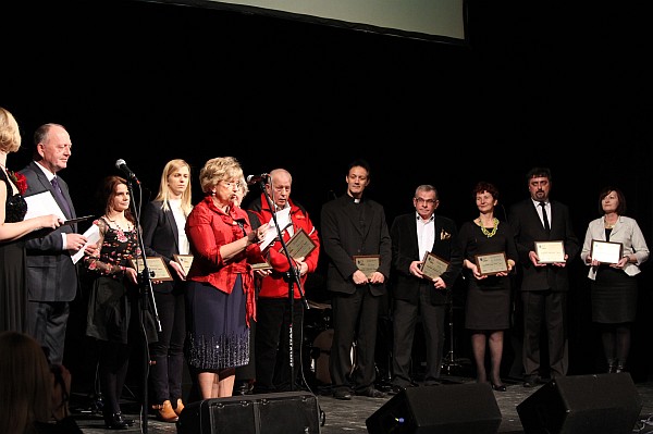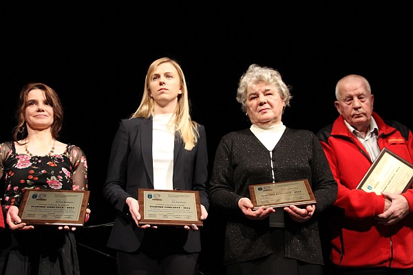 Pamiątkowe statuetki "Ziarnka Gorczycy" wręczali: wiceprezydent Bożena Jawor oraz radny wojewódzki Leszek Zegzda, prezes Towarzystwa Przyjaciół Chorych Sądeckie Hospicjum.
