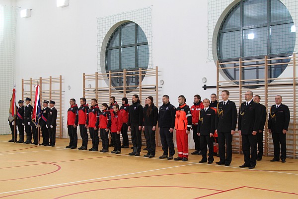 W uroczystości uczestniczyli również m.in.: Wiceprzewodniczący Rady Miasta Nowego Sącza Stefan Chomoncik, dyrektor Wydziału Zarządzania Kryzysowego i Ochrony Ludności UM Marek Nieć, kadra kierownicza Komendy Miejskiej PSP, członkowie Zarządu Oddziału Powiatowego Związku Ochotniczych Straży Pożarnych, Prezesi Zarządów oddziałów Gminnych ZOSP RP oraz Komendanci Gminni OSP.