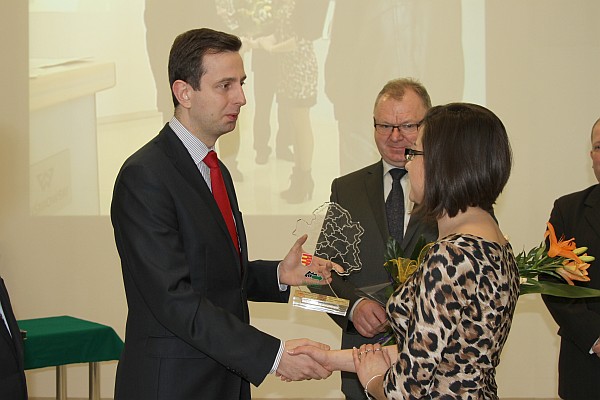 Minister Władysław Kosiniak-Kamysz wraz ze starostą Janem Golonką i przewodniczącym RPN Wiesławem Bastą wręczyli nagrody w IV edycji konkursu „Start w biznes z Urzędem Pracy”.