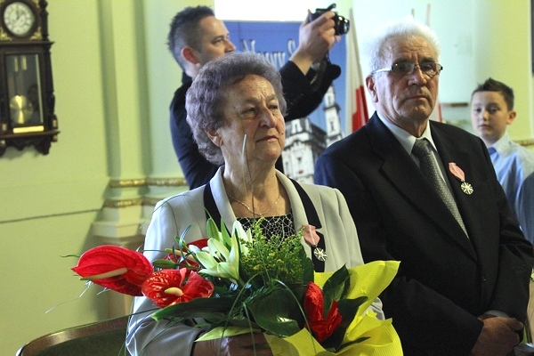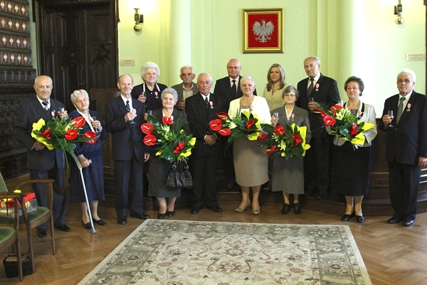 Jubilatom, wśród których byli Maria i Jan Koszykowie, Bronisława i Tadeusz Kurdzielowie, Janina i Stanisław Nalepowie, Jadwiga i Józef Orlita, Krystyna i Stanisław Wybraniec oraz Eleonora i Stanisław Zegartowscy, gratulacje oraz życzenia przekazała również kierownik USC Małgorzata Antkiewicz-Wójs. Następnie prezydent Ryszard Nowak wręczył medale za długoletnie pożycie małżeńskie przyznane przez Prezydenta RP. W uroczystości, uczestniczyli bliscy i przyjaciele Jubilatów.