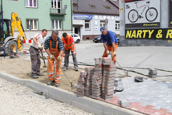 Powoli dobiega końca I etap prac na ul. Paderewskiego. Aktualnie trwa układanie chodników oraz przygotowywanie podbudowy pod pierwszą warstwę asfaltu.