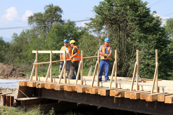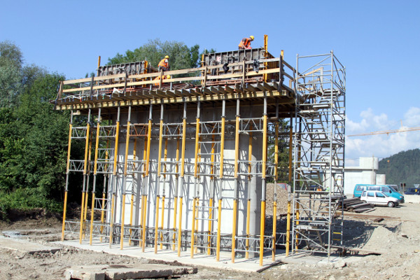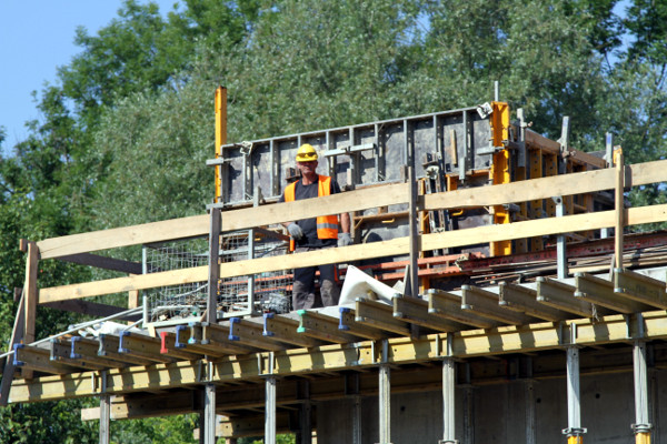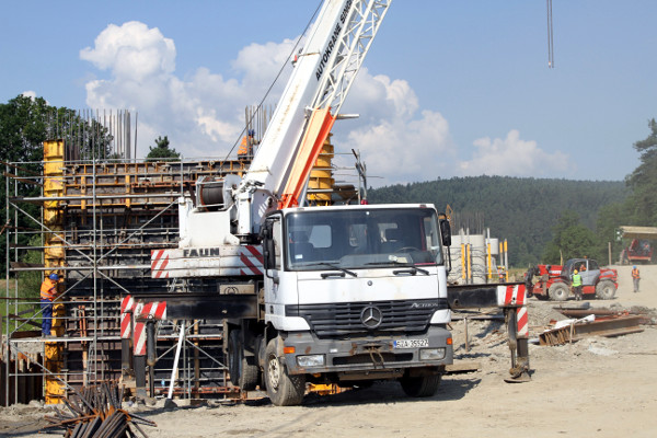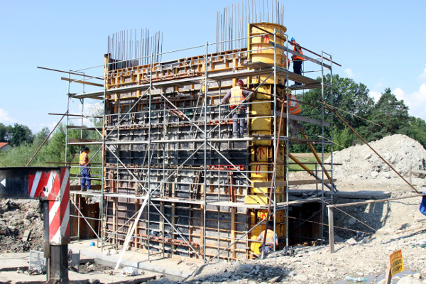 Prowadzone są roboty związane z deskowaniem i zbrojeniem filarów I, J. Trwa betonowanie ław wytwórni pod ustrój nośny. Trwają prace przy podporach C, K, L, J.