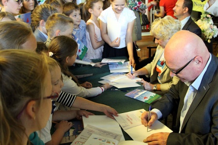 Na zakończenie spotkania w sądeckim ratuszu, prezydent Ryszard Nowak wraz z wiceprezydent Bożeną Jawor oraz dyrektorem Józefem Klimkiem, podpisywali - laureatom i uczestnikom konkursu - okolicznościowe albumy.