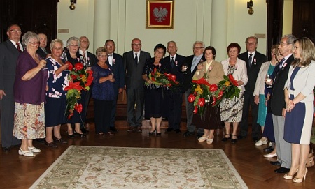 Jubilatom, wśród których byli Teresa i Stefan Broszkiewiczowie, Stanisława i Tadeusz Chwastowie, Bogumiła i Mieczysław Grucelowie, Irena i Stefan Jasińscy, Stefania i Jan Porębscy, Zofia i Wincenty Potoczkowie, Łucja i Mieczysław Stańczykowie, Janina i Adam Straubowie oraz Krystyna i Julian Wójcikowie gratulacje oraz życzenia przekazała również kierownik USC Małgorzata Antkiewicz-Wójs.