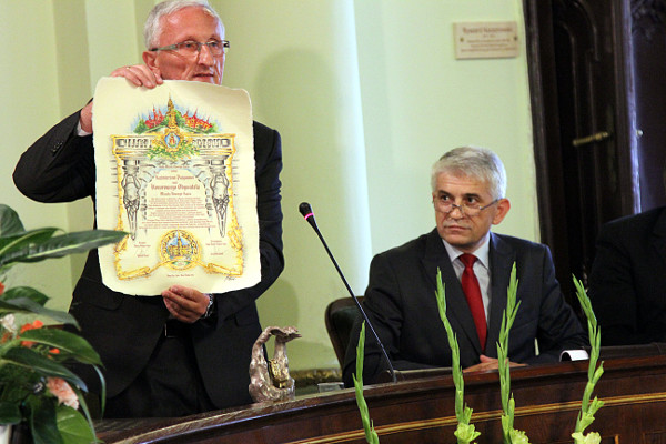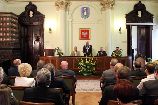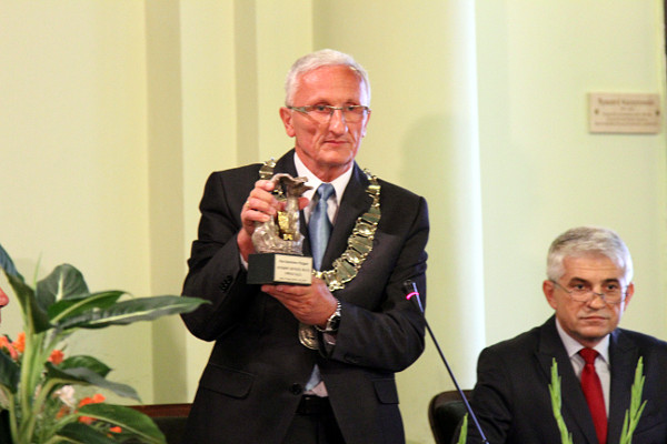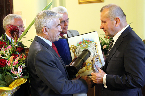 Następnie Przewodniczący Rady Miasta Jerzy Wituszyński wraz z zastępcami: Stefanem Chomoncikiem, Janem Opiło i Grzegorzem Doboszem, wręczyli okolicznościowy dyplom i statuetkę – przyznawaną Honorowym Obywatelom Miasta Nowego Sącza.