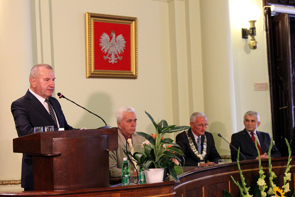 Gratulacje przekazali wojewoda małopolski Jerzy Miller: - Wspomniano już 25 lat zmian w Polsce, ale zmiana to tylko szansa, można ją wykorzystać lub nie. Pan należy do tych osób, które są symbolem odwagi gospodarczej. Pan jest symbolem zmian naszej mentalności. Nie czekał Pan, aby ktoś rozwiązywał Pana problemy. To Pan jest gotów rozwiązywać problemy innych. Jeśli mamy mniej bezrobotnych, to jest to Pana zasługa - mówił wojewoda małopolski Jerzy Miler. Prowadzi Pan innowacyjną gospodarkę, czyli taką która znajduje nabywcę i możliwość zbytu. Jest Pan prekursorem gospodarki poza granicami kraju. Gratuluję, życzę dalszych sukcesów i szacunku.