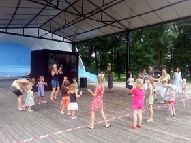 W sobotę (26 lipca) już od godz. 14:00 maluchy wzięły udział w spotkaniach teatralno-tanecznych, w ramach których odbył się spektakl lalkowy pt. "O straszliwym smoku, dzielnym Szewczyku, przepięknej królewnie i Królu Gwoździku".