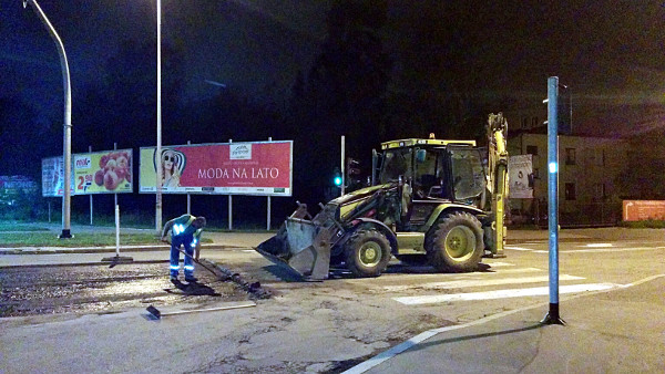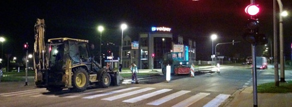 Godziny nocne, to czas kiedy drogowcy mogą spokojnie realizować prace remontowe, nie powodując dodatkowych utrudnień w ruchu. Tak jest właśnie na skrzyżowaniu ulicy Lwowskiej, Prażmowskiego i Nowochruślickiej, gdzie właśnie trwają prace związane z wymianą nawierzchni na wybranych pasach ruchu. Chodzi między innymi o wyeliminowanie tzw. "garbu" na przejeździe w ciągu ulicy Prażmowskiego oraz Nowochruślickiej, a także w kierunku przeciwnym.