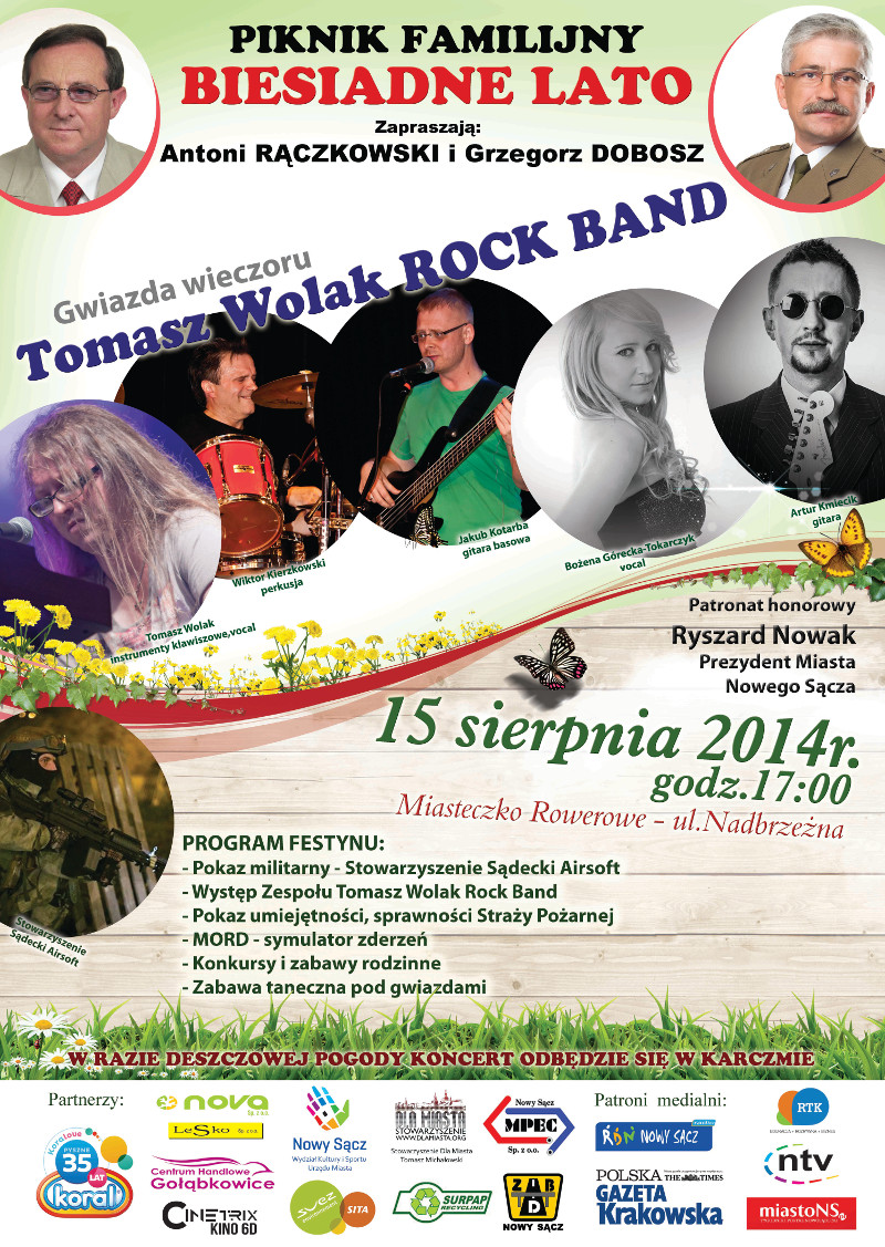 Pokaz militarny, prezentacje sprawności Straży Pożarnej, symulator zderzeń MORD czy konkursy i zabawy rodzinne, to tylko niektóre z atrakcji jakie przygotowali organizatorzy Biesiadnego Lata w Miasteczku Rowerowym. Gwiazdą wieczoru będzie Tomasz Wolak Rock Band. Szczegóły na plakacie.