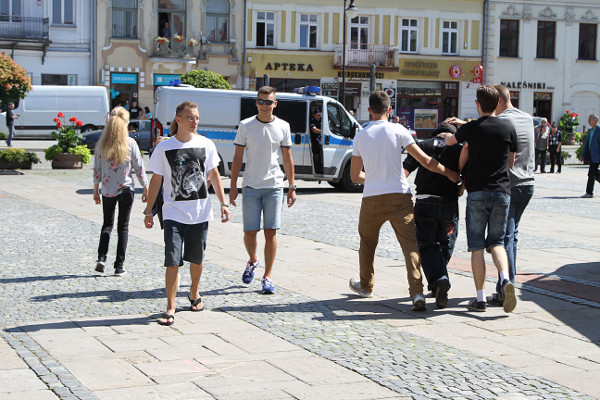 Pod hasłem "Nie bądź obojętny - REAGUJ", na płycie sądeckiego Rynku odbył się dzisiaj niecodzienny happening. Przedstawione pozoracje były przykładem na to, jak powinniśmy reagować na negatywne zjawiska, która dzieją się dookoła nas. Jednym z celów akcji było także uwrażliwienie Sądeczan na los - będącego w potrzebie - drugiego człowieka. Wydarzenie odbyło się pod patronatem prezydenta Ryszarda Nowaka.