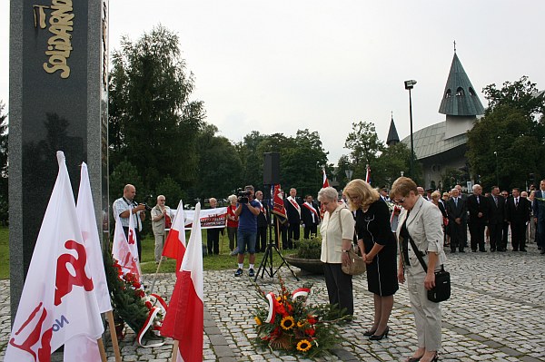 - Solidarność lat osiemdziesiątych była pokojowym powstaniem narodowym do niepodległości, wolności i prawdy. Była też buntem przeciwko społecznej niesprawiedliwości i haniebnego traktowania pracowników i pracy. Ruch ten niósł w sobie niezwykle silny ładunek moralny i patriotyczny. Był to patriotyzm nadziei na zmiany wyrażony przez miliony ludzi z różnych środowisk i zawodów zatroskanych o los swojej Ojczyzny – mówiła przewodnicząca NSZZ Solidarność Maria Zielińska-Gorzula. Przypominając trudne lata, sierpień 1980 roku, idee solidarności społecznej dodała, że pomimo tego, że żyjemy w demokratycznym państwie i korzystamy z wielu swobód obywatelskich to obwinia się związki zawodowe i wmawia społeczeństwu, że „Solidarność jest przeszkodą w przemianach gospodarczych”. Dzisiaj potrzeba nam odwagi i determinacji w walce o prawdę, sprawiedliwość i pracę. Nie możemy zawiść tych zwykłych, uczciwych i szlachetnych ludzi, którzy w 1980 roku mieli wielkie marzenia o sprawiedliwej i zasobnej Polsce – zakończył przemówienia szefowa związku.