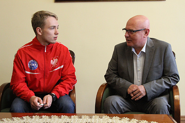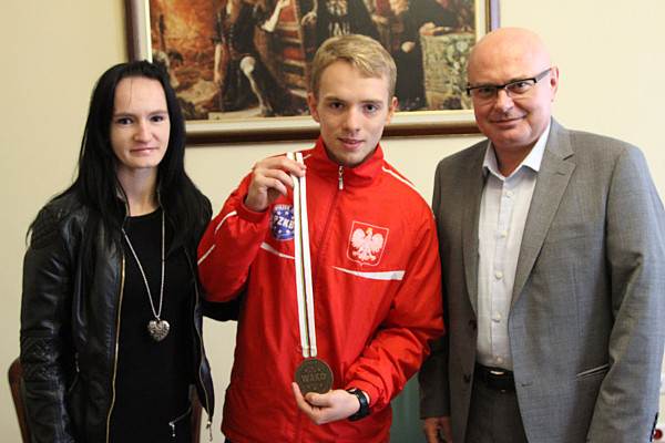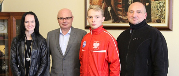 Podopieczny nowosądeckiego Klubu Sportowego Evan Konrad Garncarczyk, brązowy medalista Mistrzostw Świata kadetów i juniorów w kickboxingu we włoskim Rimini, spotkał się z prezydentem Ryszardem Nowakiem. Zawodnik odebrał gratulacje i życzenia dalszych sukcesów sportowych, a towarzyszyli mu - Ewa i Krzysztof Bulanda z KS Evan.