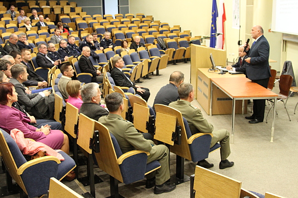 Podczas podsumowania ćwiczeń w auli Wyższej Szkoły Biznesu WSB-NLU, wiceprezydent Jerzy Gwiżdż podziękował wszystkim służbom za gotowość do obrony ludności w sytuacjach kryzysowych, a także podkreślił szczególną wagę tego typu ćwiczeń w kontekście zagrożeń jakie dotykają nas współcześnie:
