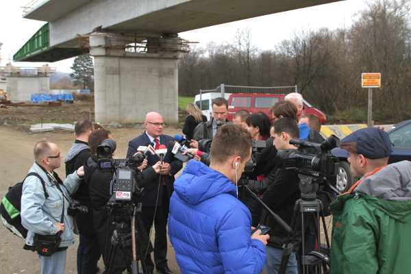 Prezydent Ryszard Nowak spotkał się dzisiaj z dziennikarzami podczas krótkiego briefingu przy nowej estakadzie nad ulicą Dunajcową. Głównym tematem były postępy w pracach na terenie inwestycji Obwodnica Północna z nowym mostem na Dunajcu.