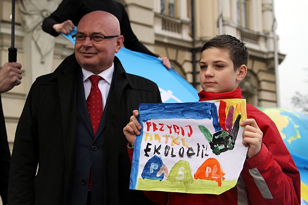 - Ponad połowa zanieczyszczeń powietrza w naszym mieście pochodzi z emisji spalin przez samochody. Jednocześnie wchodzimy w okres grzewczy, a nie wszyscy korzystają z ekologicznych pieców. Kiedy przychodzi zmierzch, nad miastem unoszą się kłęby nieprzyjemnego dymu. Ponieważ w piecach palą wasi rodzice i wasi dziadkowie, dlatego to wy musicie teraz uczyć starszych jak dbać o środowisko i powietrze. Musimy to zrobić dla was i dla kolejnych pokoleń - powiedział prezydent Ryszard Nowak do dzieci biorących udział w happeningu.
