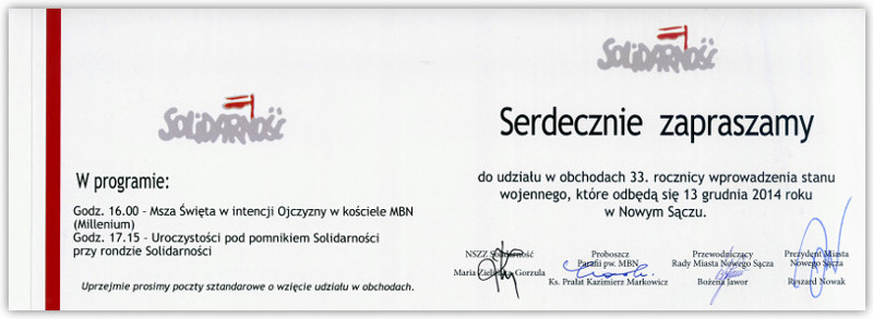 Wszystkich mieszkańców zapraszamy do udziału w obchodach rocznicy wprowadzenia stanu wojennego.