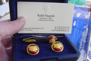 Na licytację minister Skąpski podarował złote spinki do krawata otrzymane kiedyś od b. prezydenta Litwy Valdasa Adamkusa, a poseł Sas i prezydent Wiktor – złote pióra. Spinki prezydenckie znalazły właściciela za 300 zł.