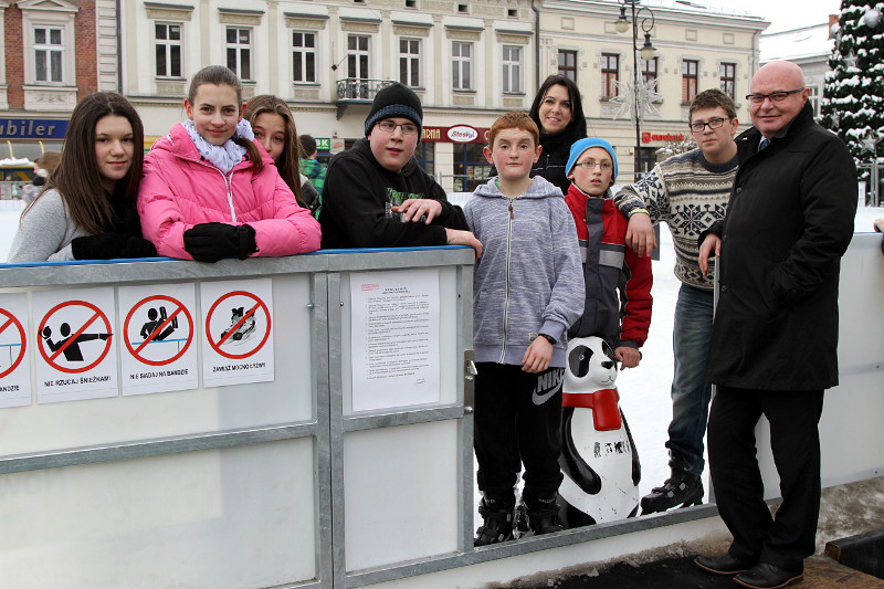 Niesłysząca młodzież z klasy 1 g z Gimnazjum nr 11 w Nowym Sączu po raz kolejny wzięła udział w zajęciach rekreacyjnych na lodowisku przed sądeckim ratuszem. Uczniowie spotkali się z prezydentem Ryszardem Nowakiem.