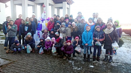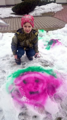 Tradycyjnie zabawie przyglądał się proboszcz ks. Eugeniusz Mrożek, który podziwiał umiejętności artystyczne dzieci w ramach konkursu "Malowanie na śniegu". W atmosferze wielkiej radości odbyła się także zabawa w lepienie bałwana i jak się okazało - dla chcącego nie ma nic trudnego.