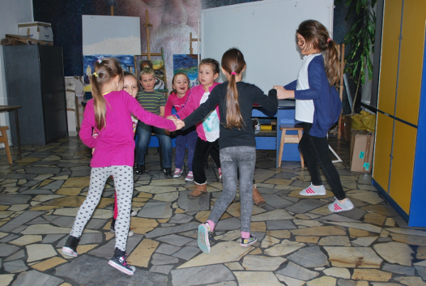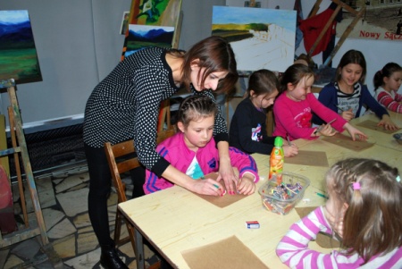 Ostatniego dnia atrakcji w okresie zimowych ferii odbyły się zajęcia zachęcające dzieci i młodzież do aktywności artystycznej w ramach bloku tematycznego "Moje spotkanie ze sztuką". Obejmował on zajęcia plastyczne i muzyczne. W trakcie zajęć,na których dzieci mogły wejść w świat szeroko rozumianej sztuki, nie brakowało rysowania, malowania, wycinania i nauki tańca oraz zabaw muzycznych.